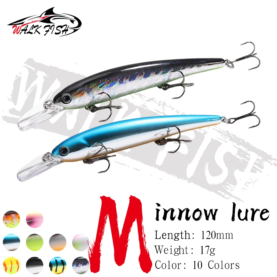 WALK FISH 120mm 17g señuelo de pesca Minnow flotante Lucio 3 ganchos cebo duro manivela cebo Wobbler señuelo duro Artificial Jerkbait Tackle