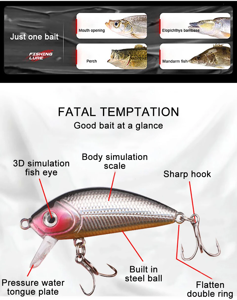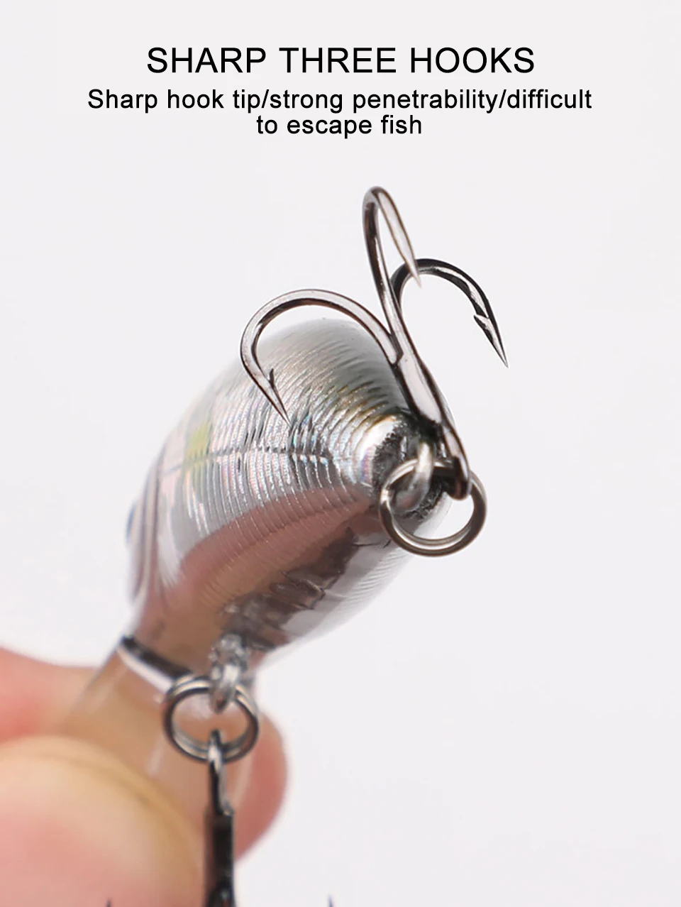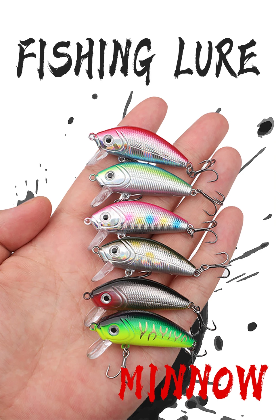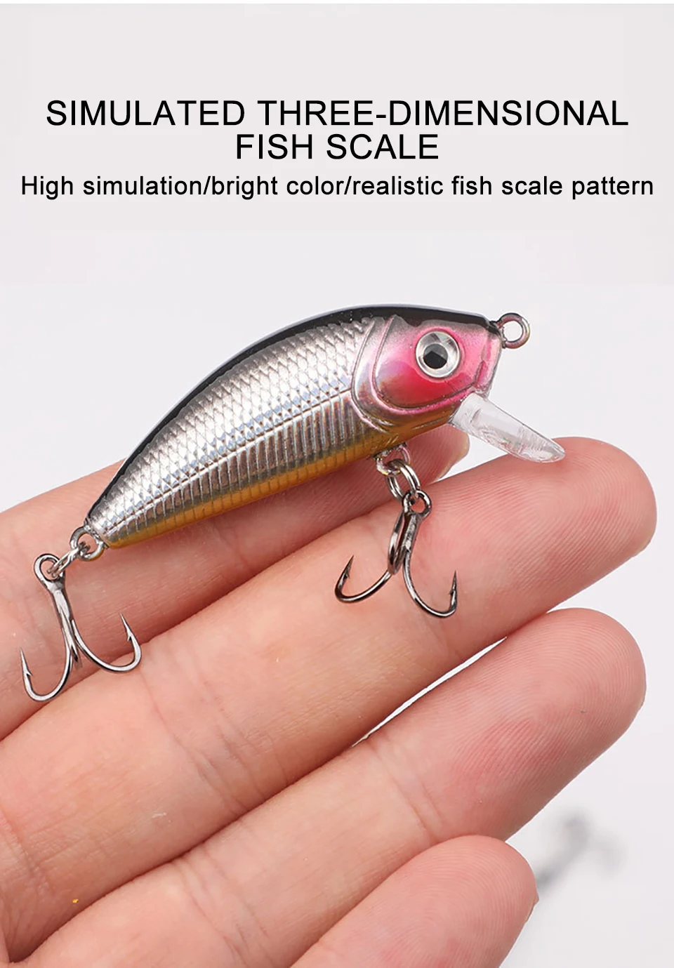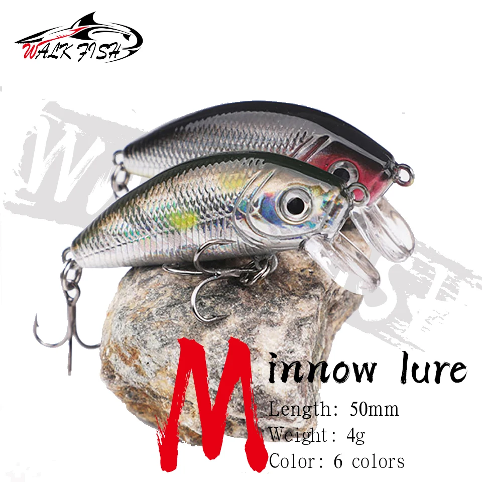 WALK Fish-señuelo de pesca flotante de pececillos, 1 piezas, 5cm, 4g, ojos 3D, Crankbait Wobbler, cebo duro de plástico Artificial, aparejos de pesca