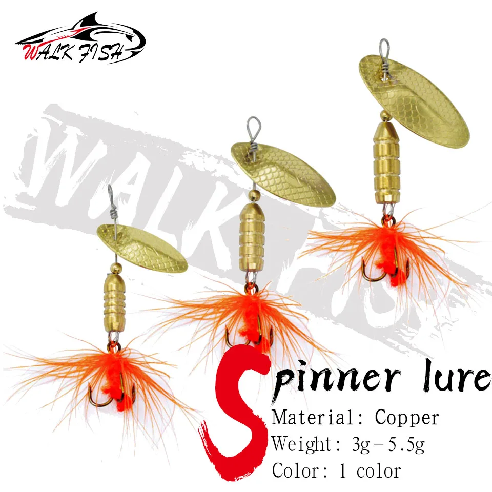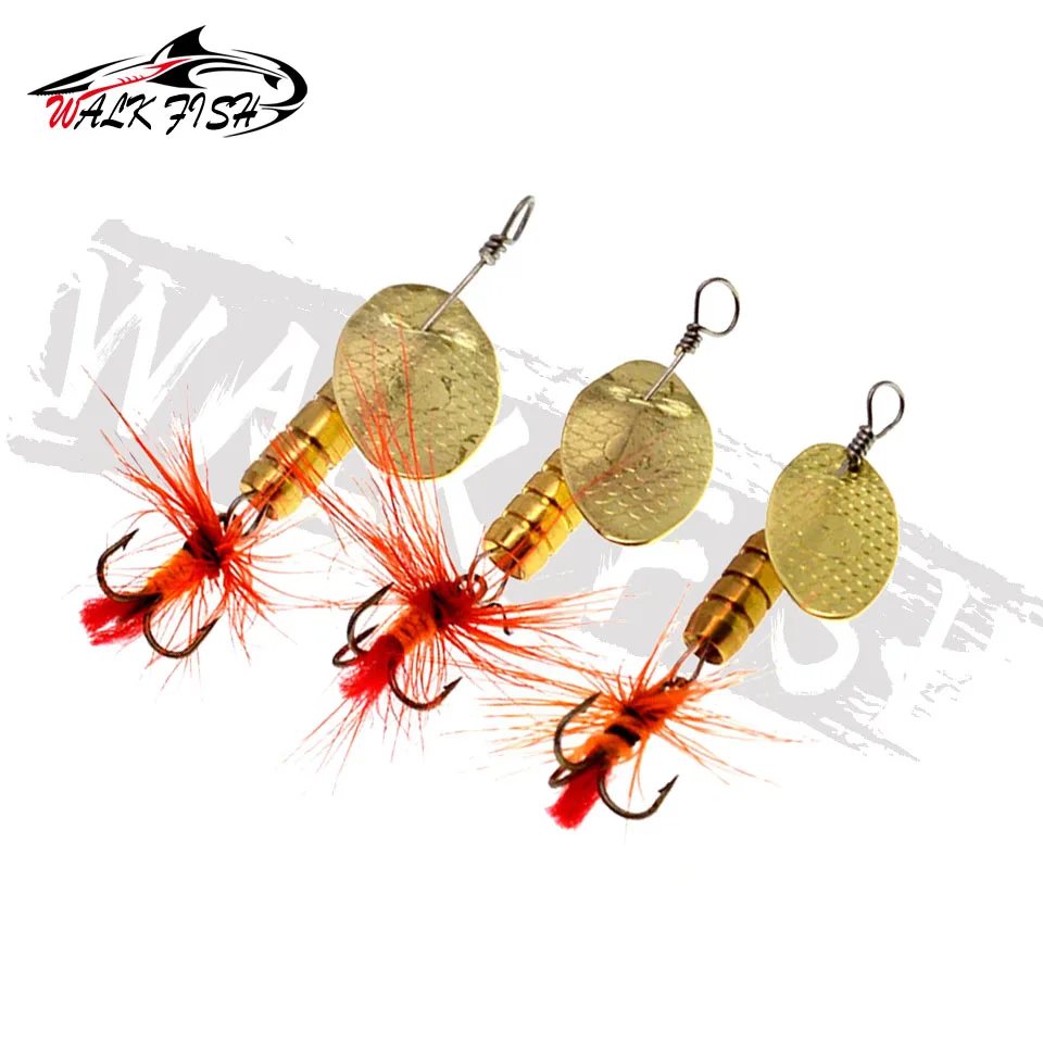 WALK FISH-señuelo de pesca giratorio de 3 piezas, cebo compuesto de 3g, 4,5g, 5,5g, cucharas de rotación, pluma, plantilla de zumbido, cebos artificiales