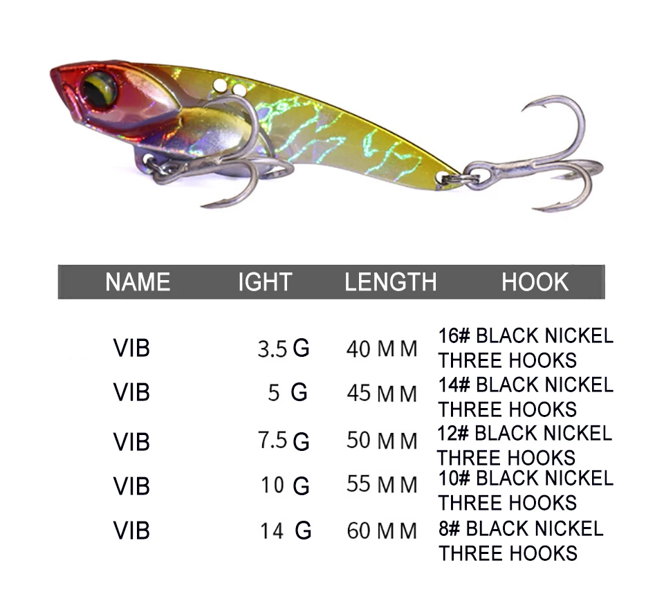 Anzuelo 1 pieza 3,5g/5g/7,5g/10g/14g VIB cuchara señuelo de pesca Spinner de Metal pesca cebo duro Crankbait con anzuelo equipo de pesca