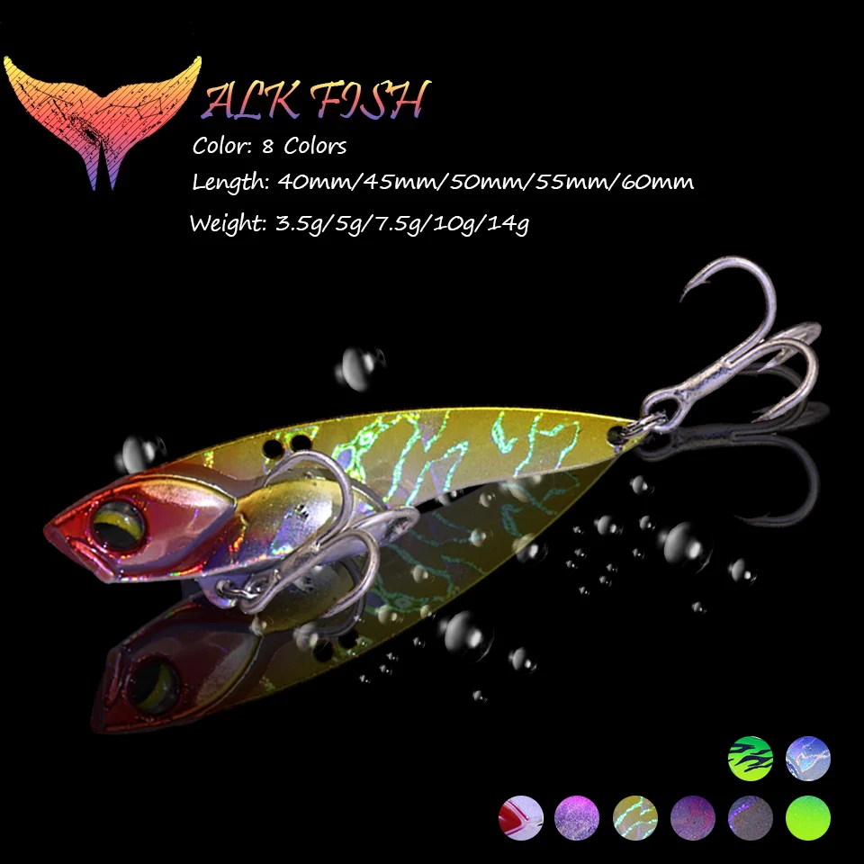 Anzuelo 1 pieza 3,5g/5g/7,5g/10g/14g VIB cuchara señuelo de pesca Spinner de Metal pesca cebo duro Crankbait con anzuelo equipo de pesca