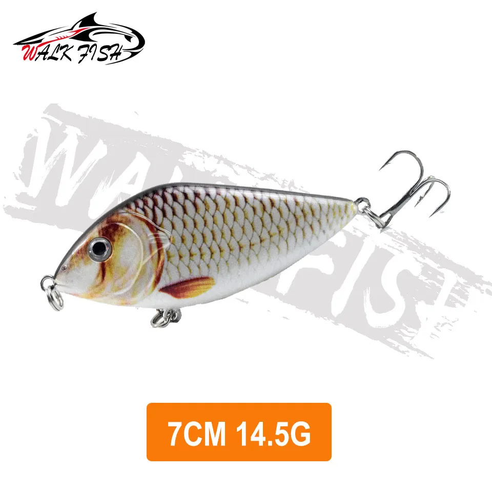 WALK FISH-señuelo de pesca Jerkbait de hundimiento lento, cebo de tirón de cuerpo duro, deslizador, acción de natación, 14,5/45G