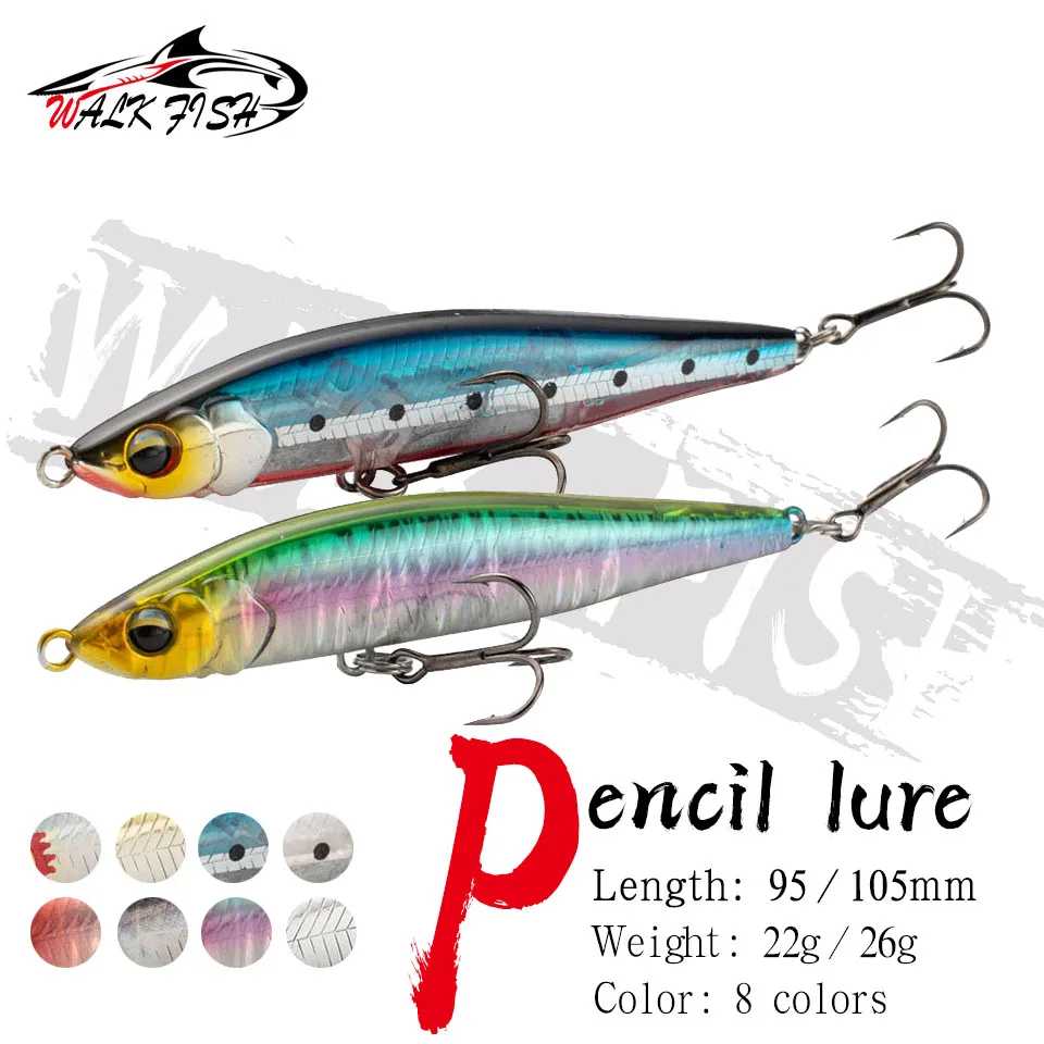 WALK FISH-señuelo de Pesca con lápiz que se hunde, 22g, 26g, fundición larga, Lucio, trucha, cebos artificiales Hart, aparejos de Pesca, 1 Uds.
