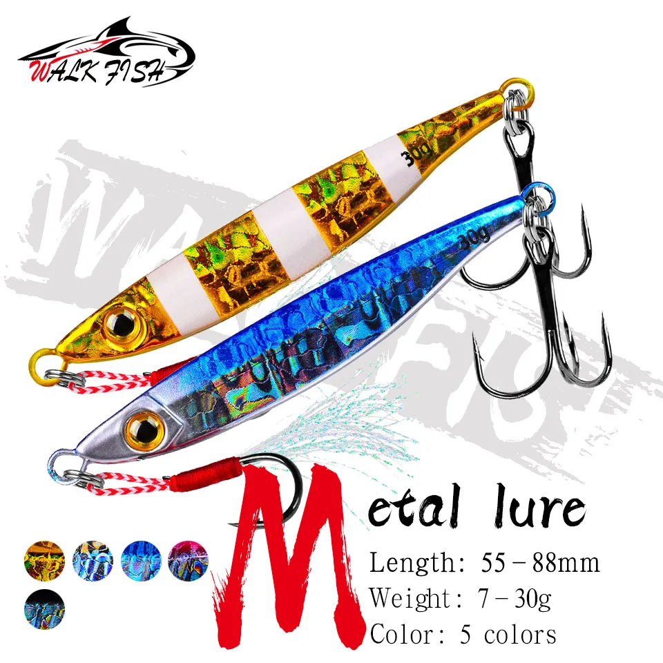 WALK FISH Señuelo de Pesca de Metal 7G 10g 15G 20G 30g Shore Cast Hook Swimbait Cuchara Jig Cebo Artificial Cubierta Láser Lucio Trucha Pesca