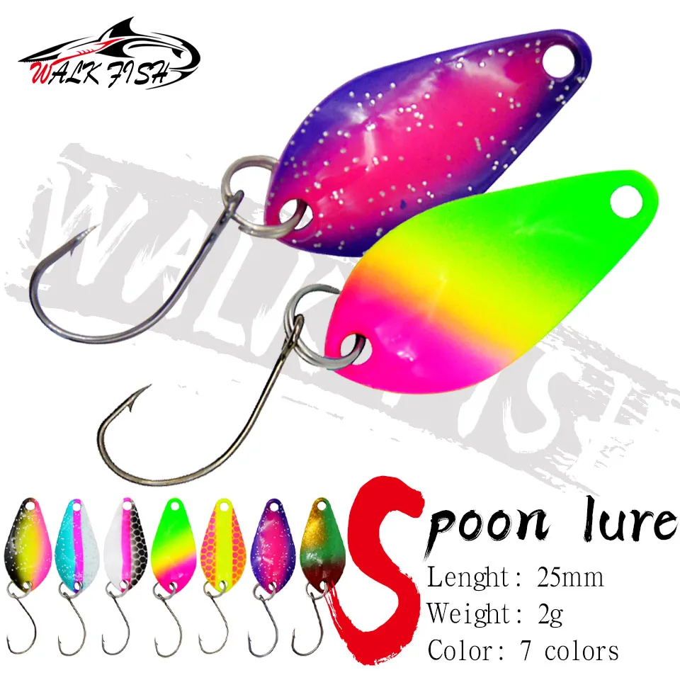WALK FISH-señuelo de pesca de Metal, cebo duro de 2g y 25mm con un solo gancho, para trucha, perca, Chub, salmón, 1 piezas