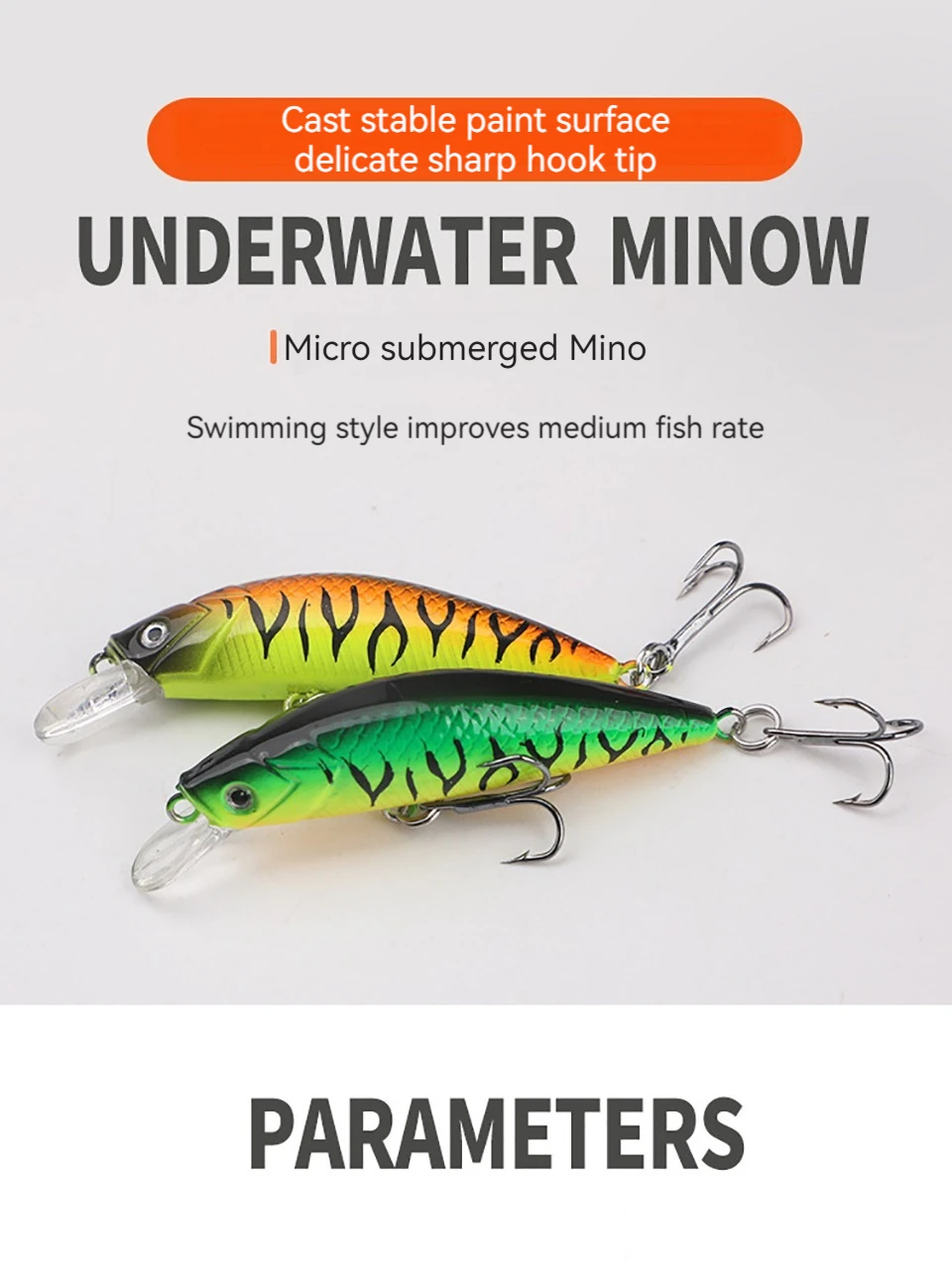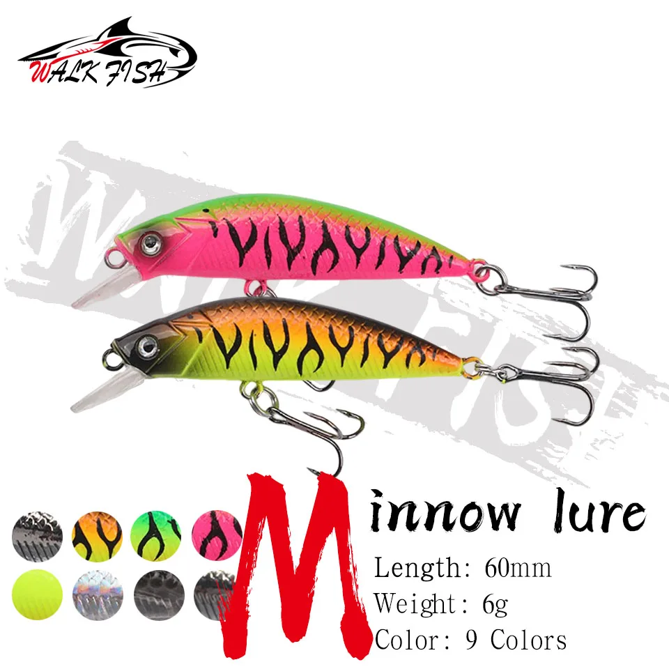WALK FISH Señuelo de Pesca de Pececillo QUE SE Hunde, Señuelo Duro de Plástico Artificial de 60mm y 6g, Cebos para Trucha y Lubina