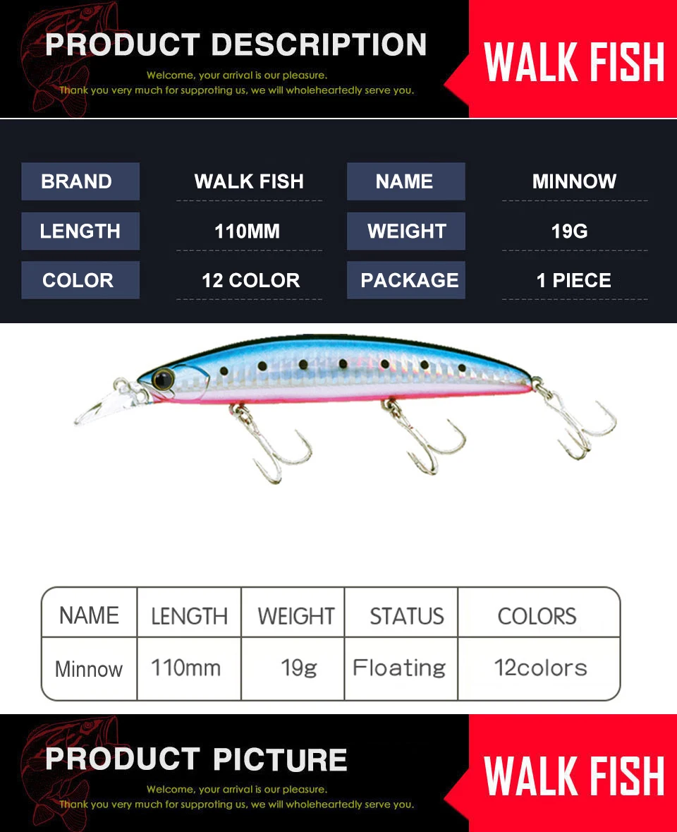 WALK FISH-señuelo de pesca de pececillos, cebo Artificial flotante, Wobblers, aparejos de pesca de lubina de mar de fundición larga, 110mm, 19g, 1 ud., nuevo