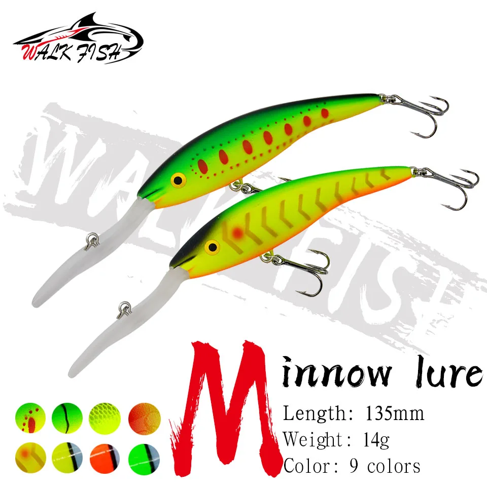 WALK FISH-señuelo de Pesca de pececillos, cebo duro de 13,5 cm y 14g de profundidad, Wobbler Artificial para natación, trucha y lubina