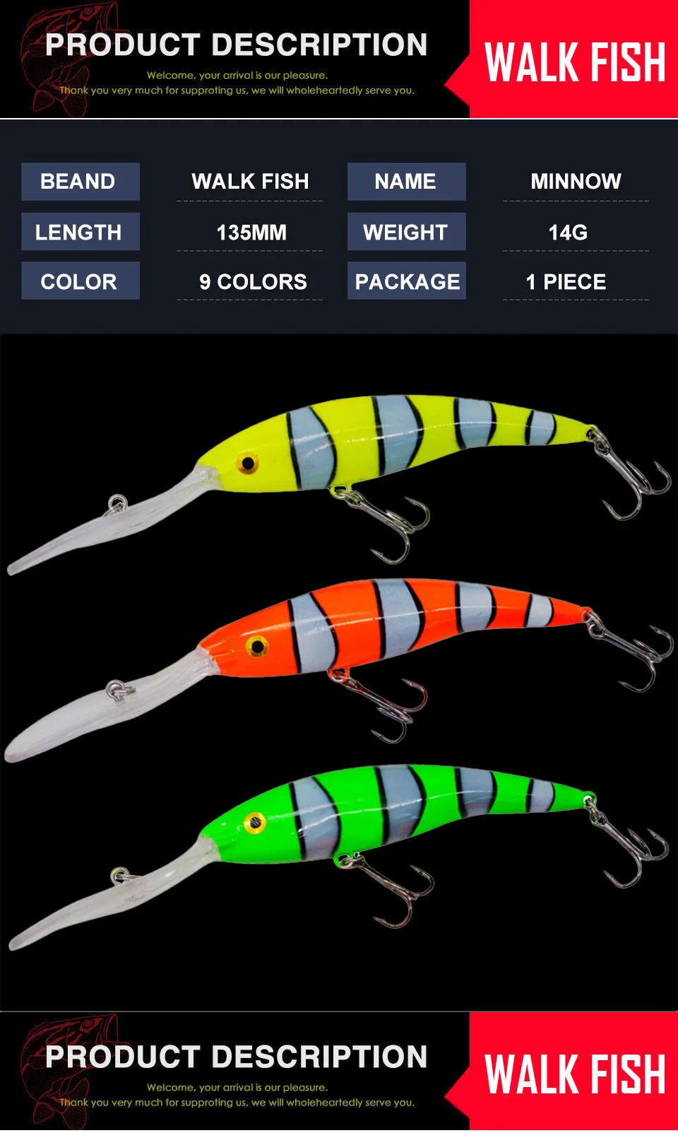 WALK FISH-señuelo de pesca de pececillos, cebo duro Artificial, Wobbler, 1 piezas, 14/20G, 135/155MM, Swimbait