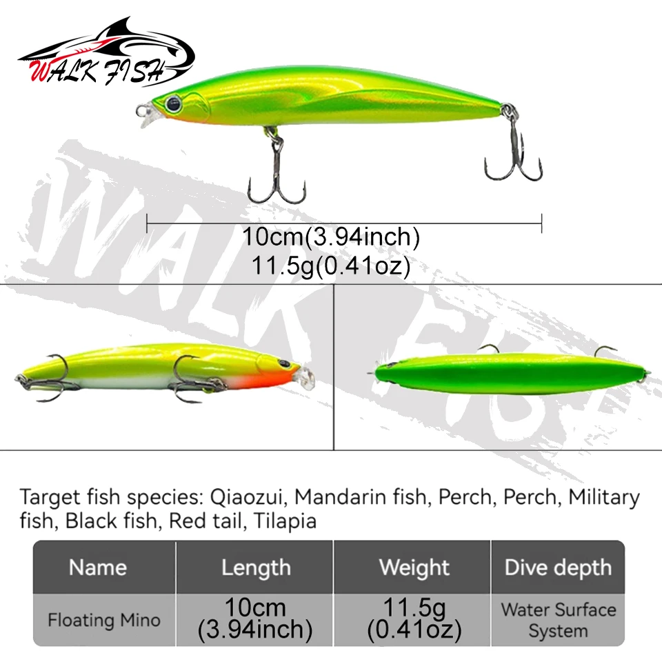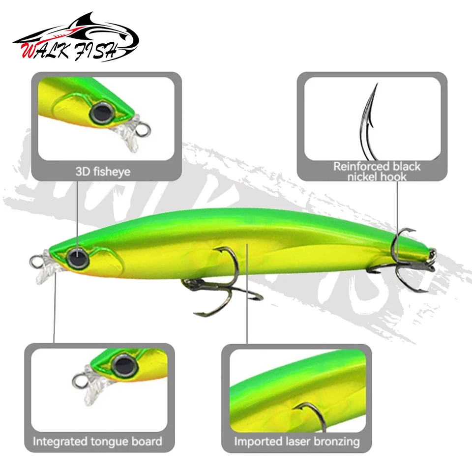 WALK FISH Señuelo de Pesca de Pececillo, Cebo Duro Flotante, Wobblers Rodantes para Lubina, Lucio, 100g, 11,5G, Aparejos de Pesca Giratorios, Océano