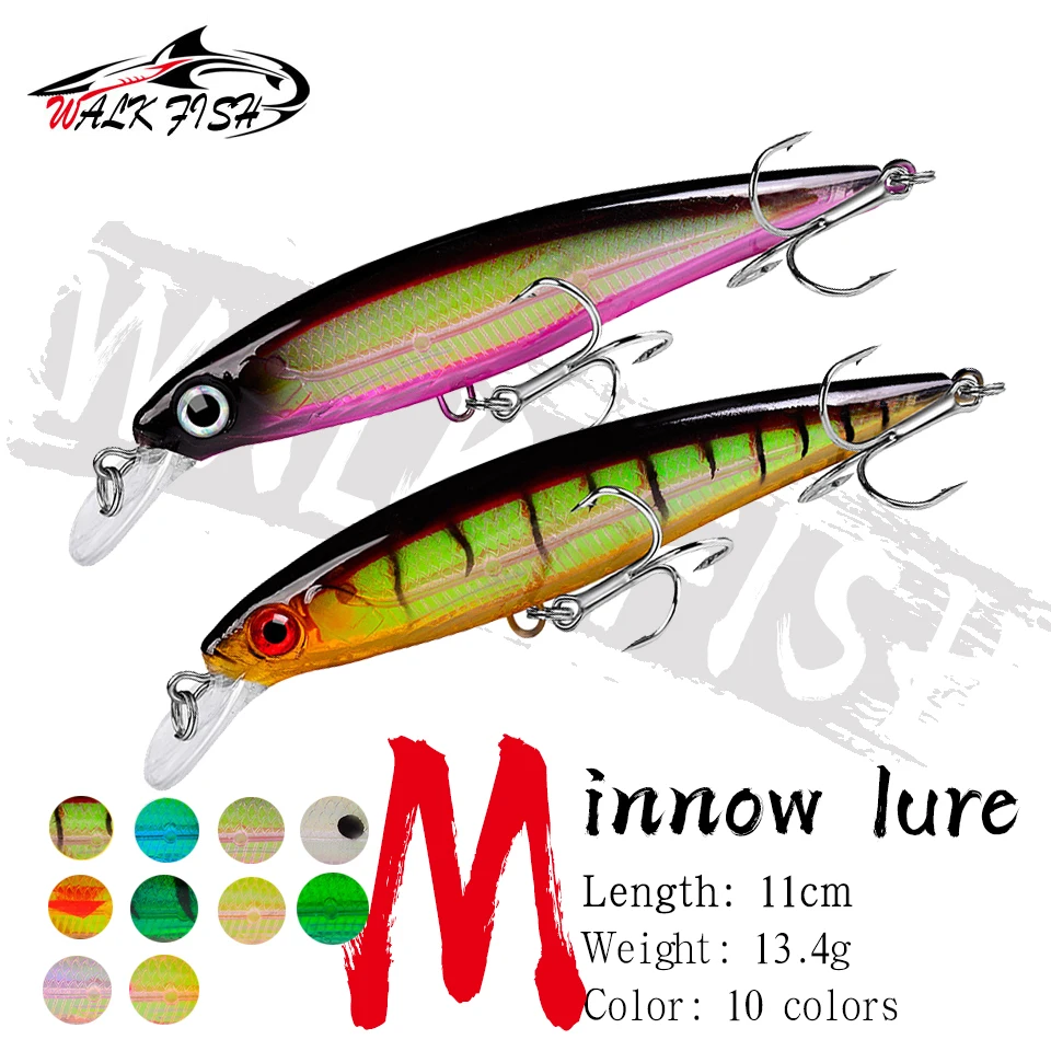 WALK FISH Laser Minnow Señuelo de pesca 11CM 13,4G anzuelos de pesca pez wobbler aparejos crankbait artificial Japón cebo duro swimbait