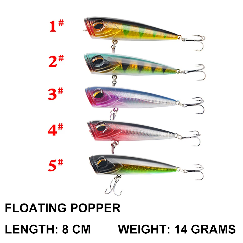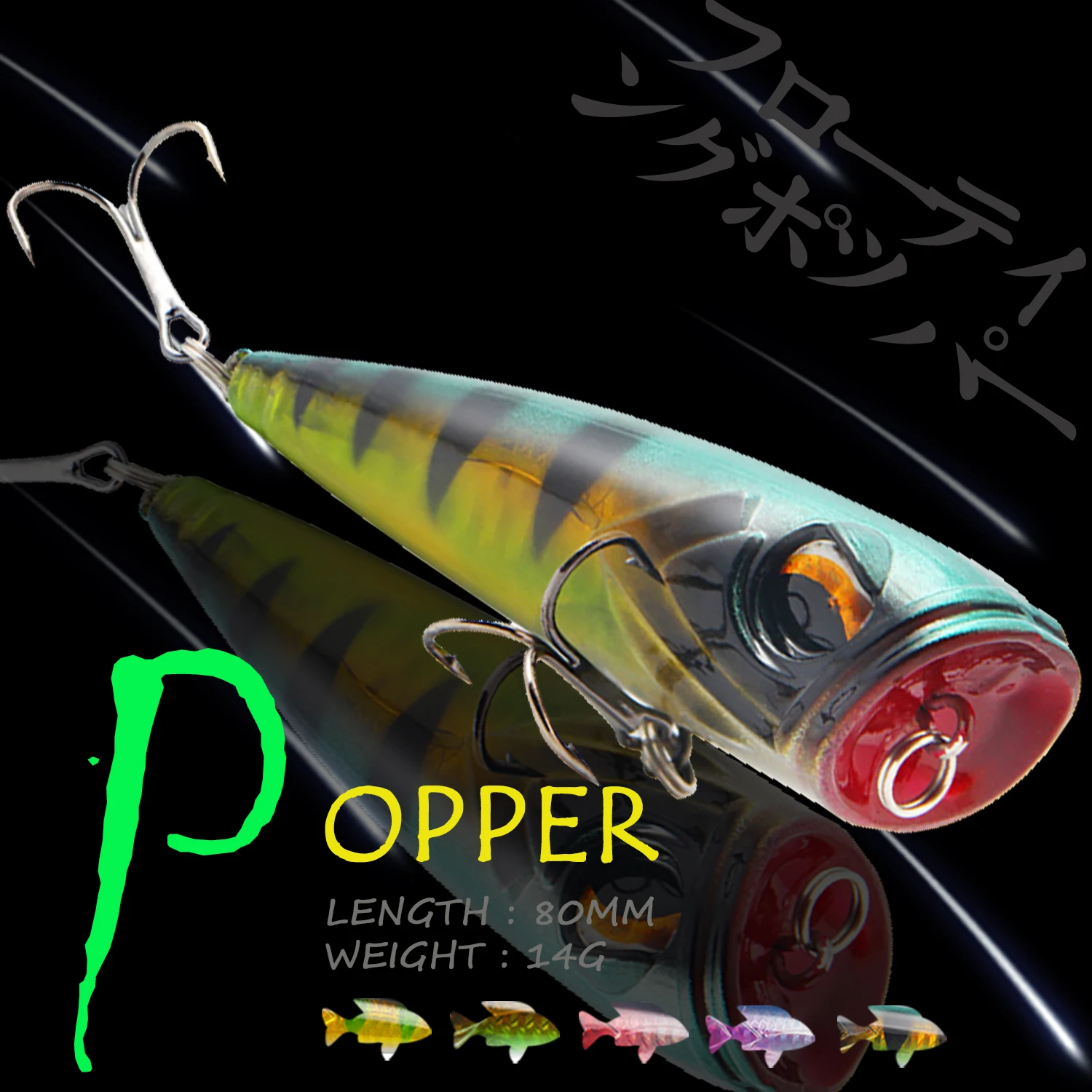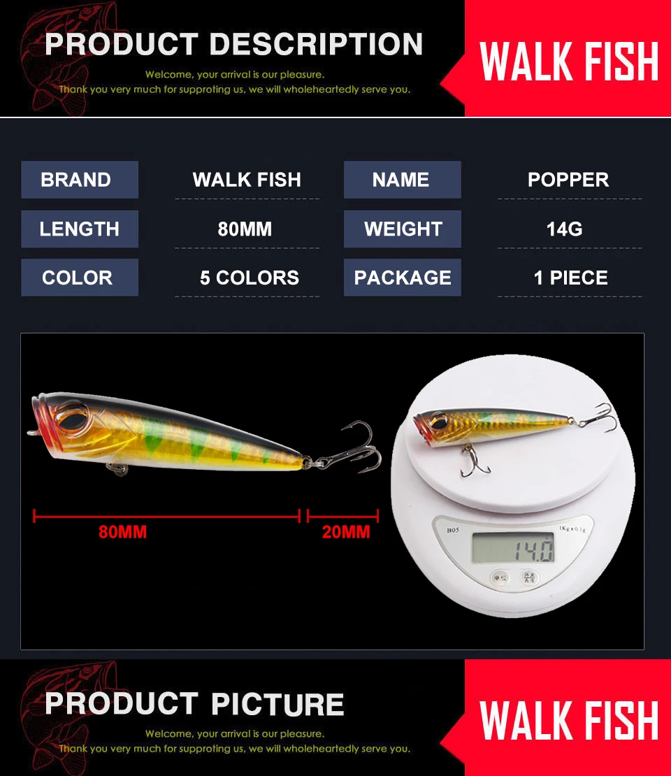 WALK FISH-señuelo de Pesca Popper, cebo Artificial flotante de 80MM y 14G, Wobblers de agua superior, cebo duro para Lucio, Pesca de lubina