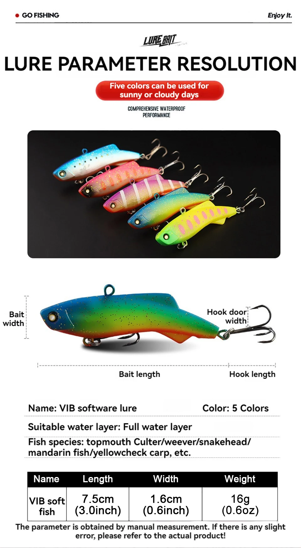 WALK FISH 75mm 16G silicona suave VIB hundimiento Slient vibración señuelo de pesca Lucio cebo Artificial invierno hielo Wobbler Gear