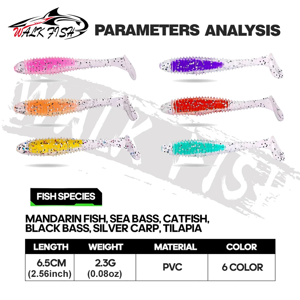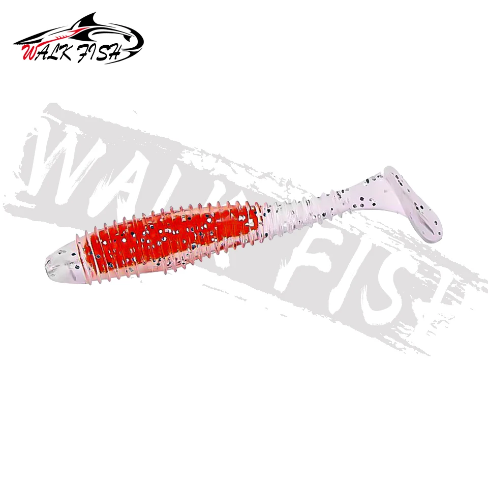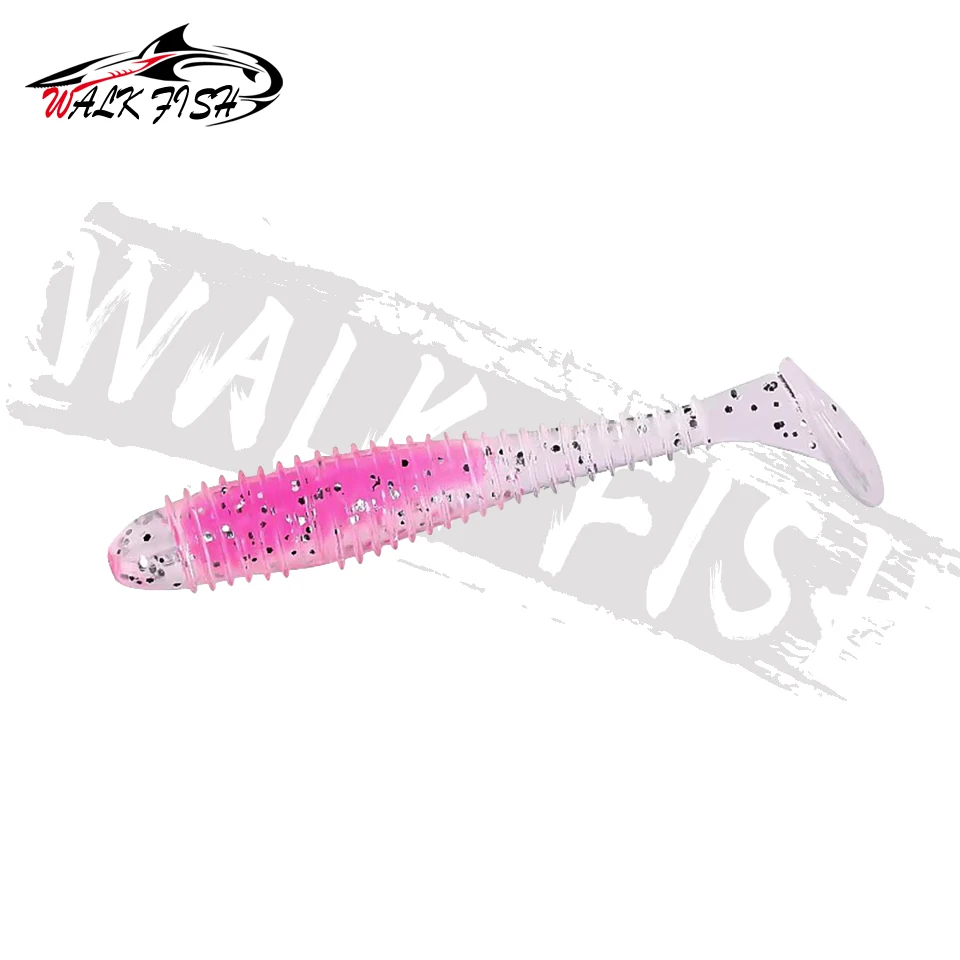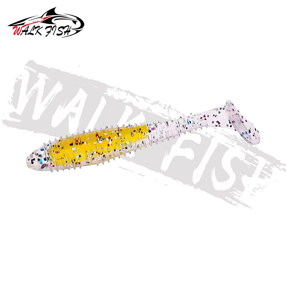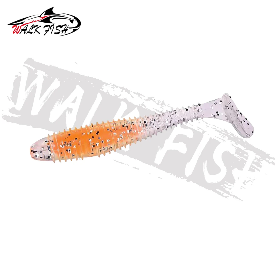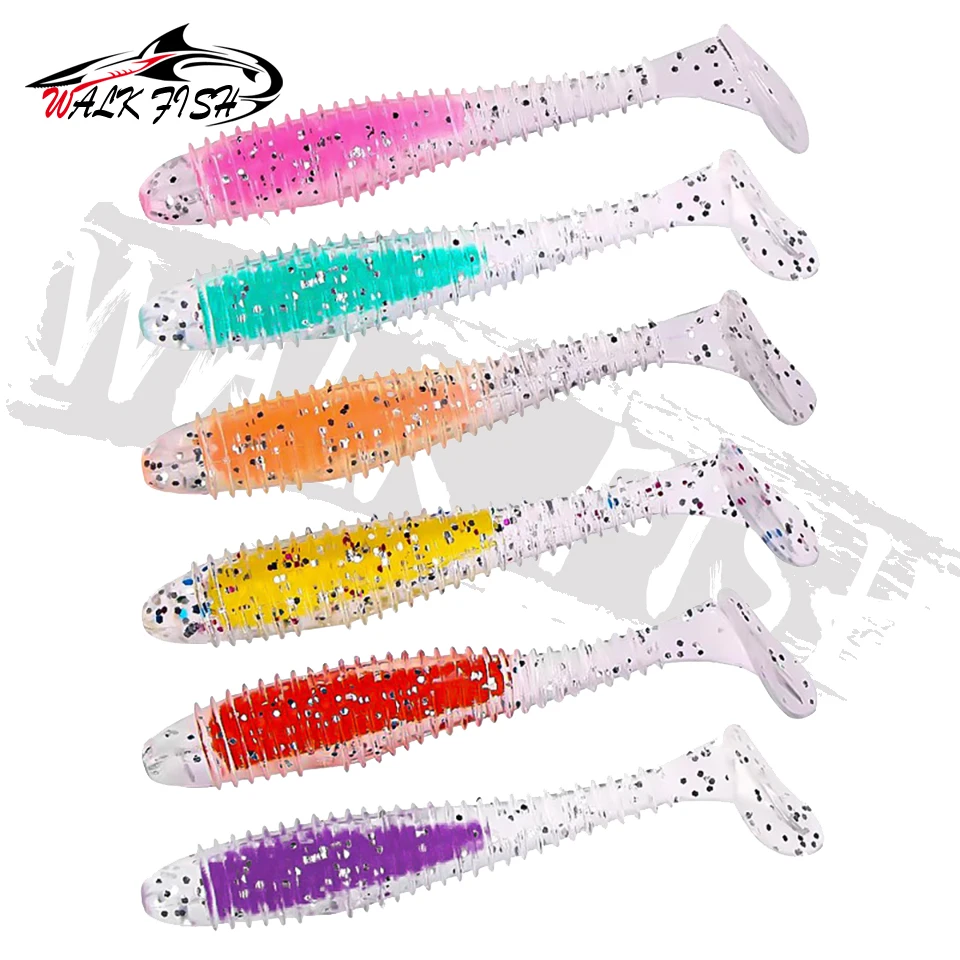 WALK FISH-señuelo de pesca suave, 6 unidades/lote, sándwich de colores, gancho con cabeza de plomo, hilo de cebo suave, cola en T, gusano de hundimiento lento, cebo de pesca salvaje