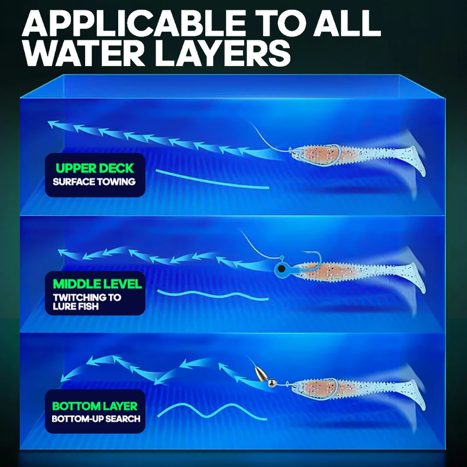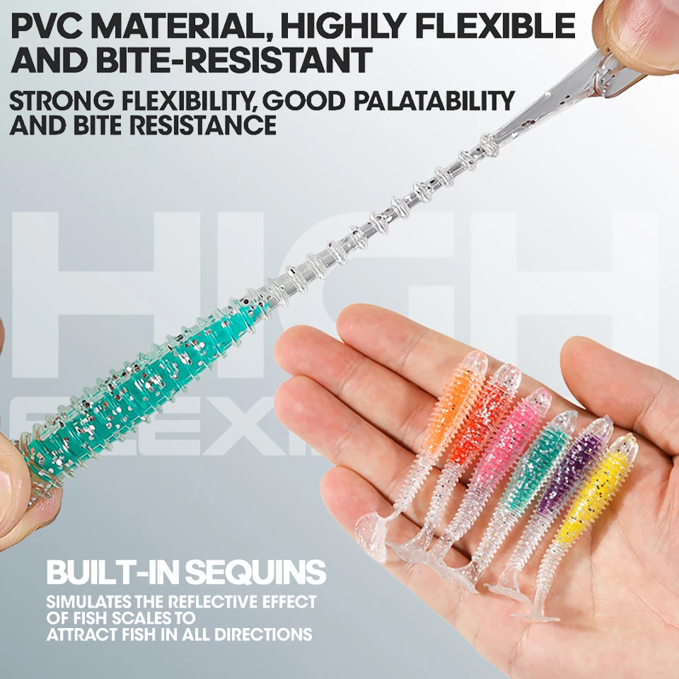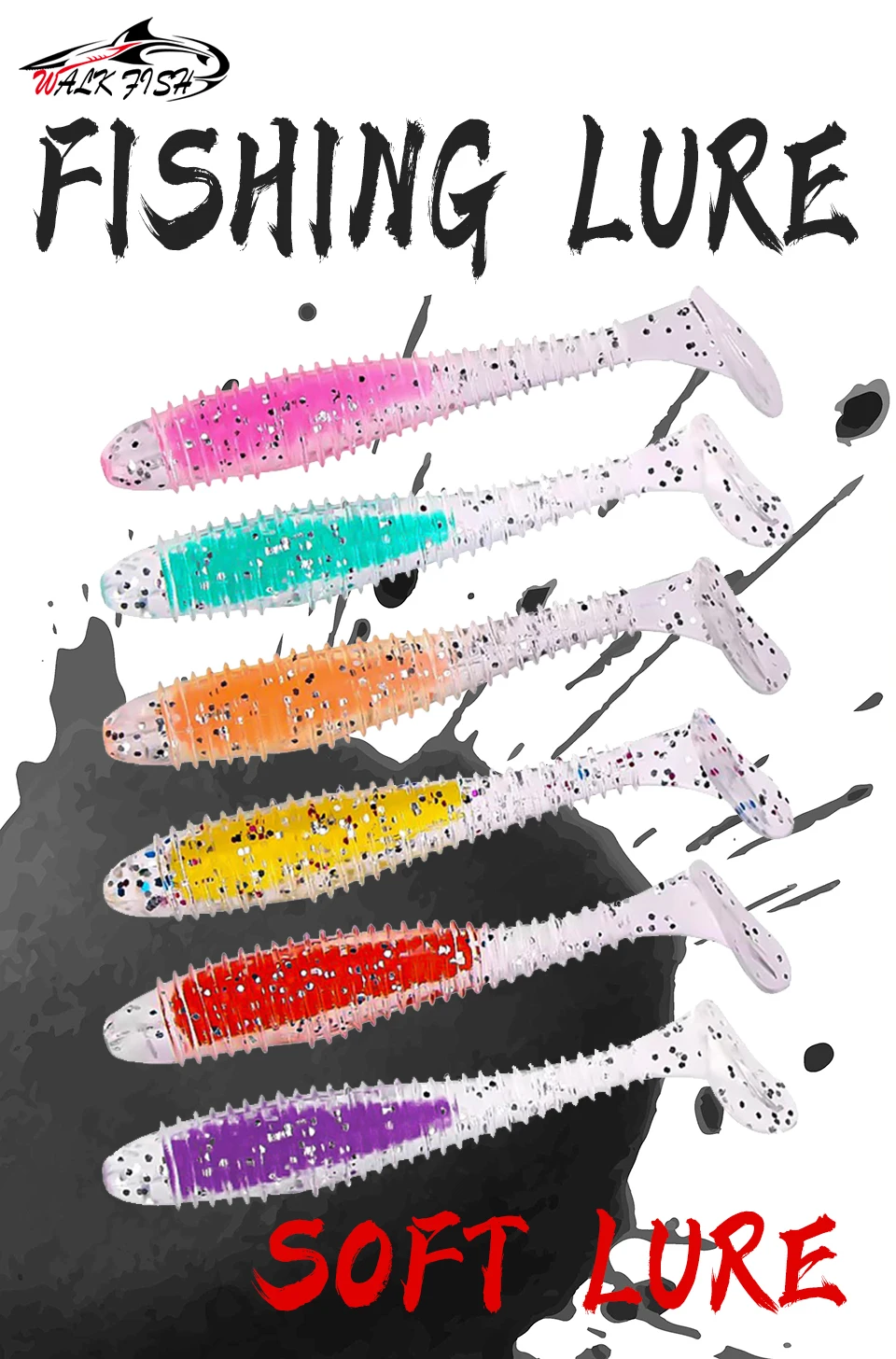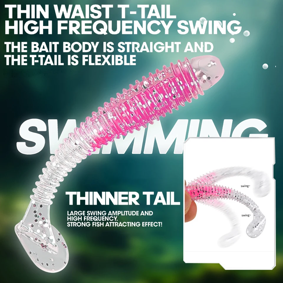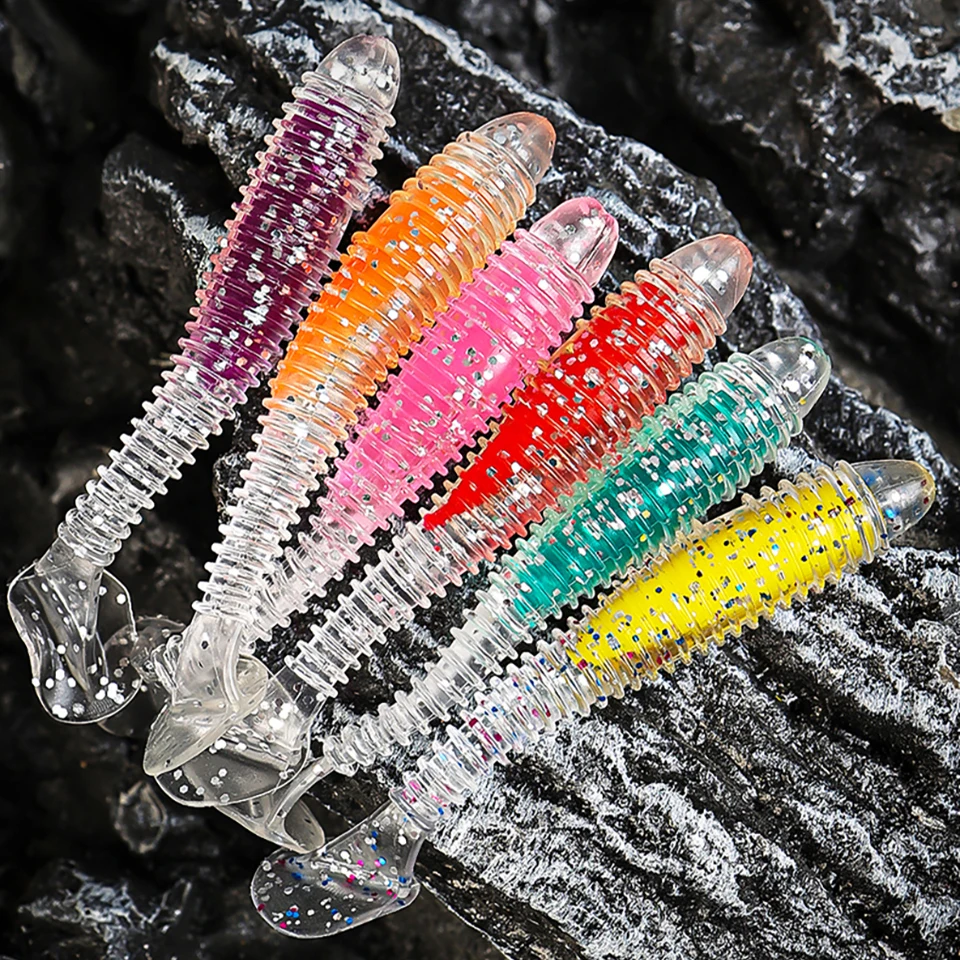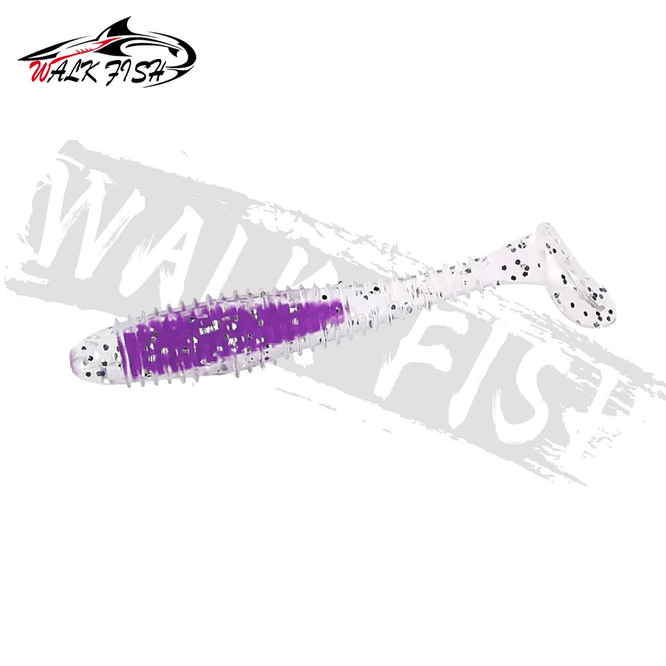 WALK FISH-señuelo de pesca suave, 6 unidades/lote, sándwich de colores, gancho con cabeza de plomo, hilo de cebo suave, cola en T, gusano de hundimiento lento, cebo de pesca salvaje