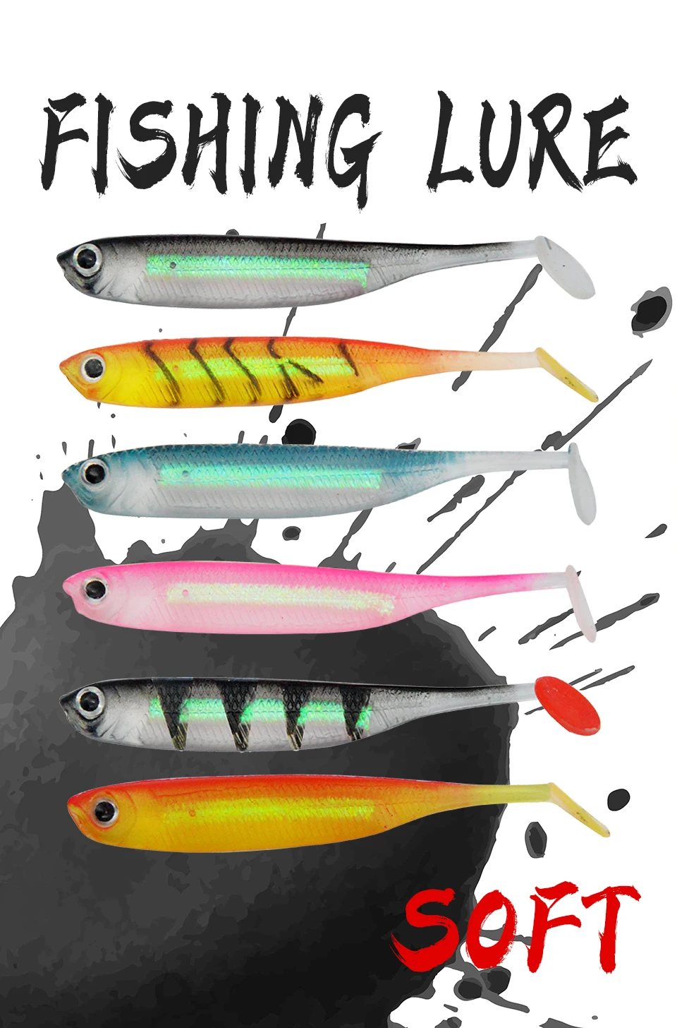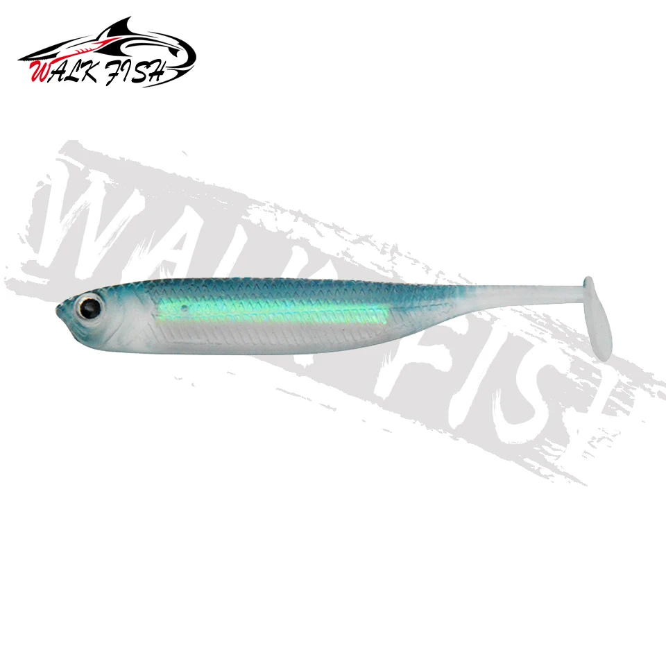 WALK FISH 5PCS/Lot Fishing Soft Bait 7.5cm 2.1g T Tail fish Fishing Lures Rainbow Color Sequin Swing Fishing Spinner Bait