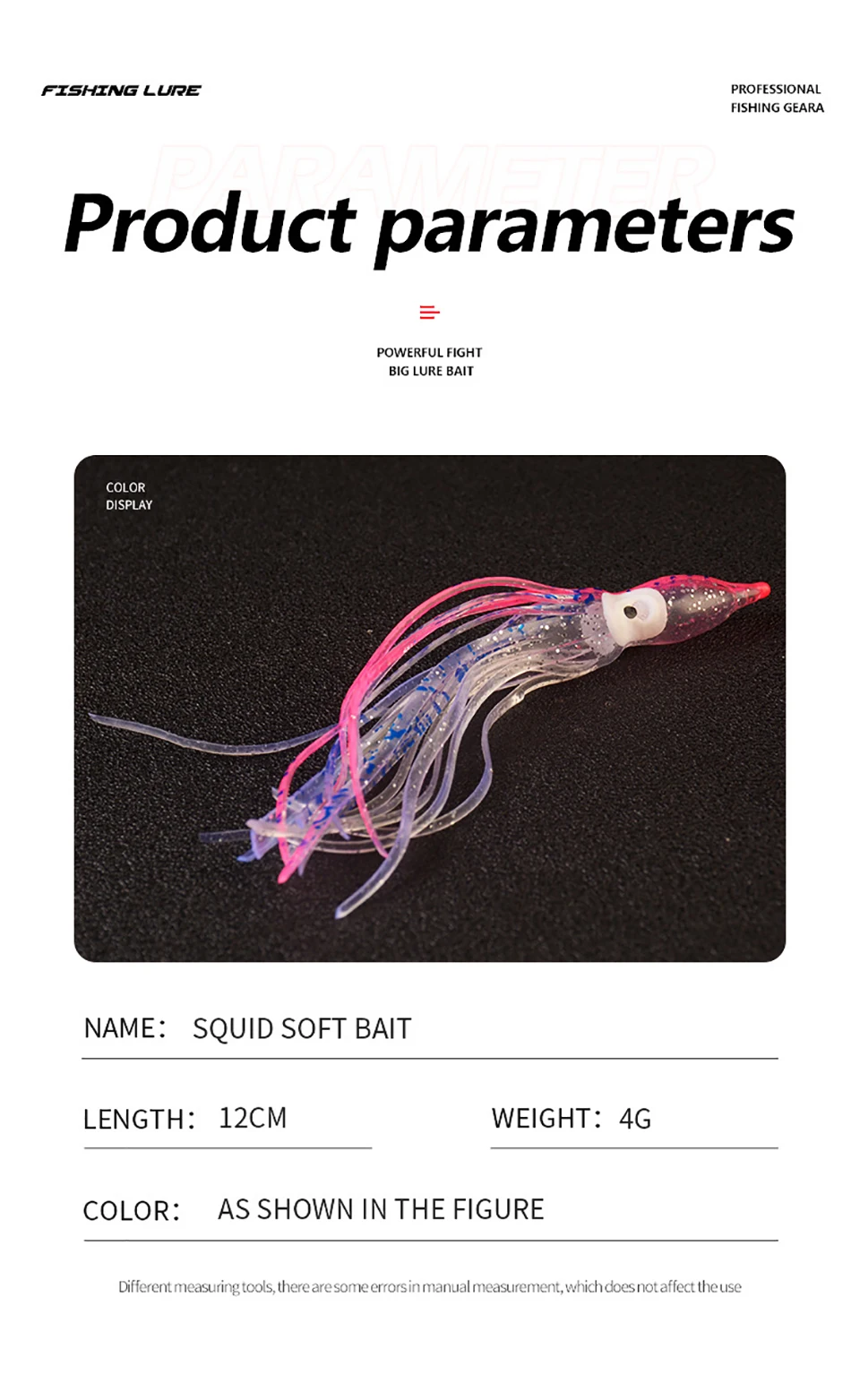 WALK FISH Señuelo de Pesca Suave de Calamar, Cebo Artificial de Goma de 12cm y 4G, Señuelos de Pulpo, Wobblers PARA LA Pesca de Atún