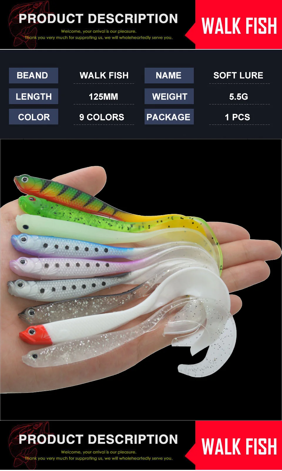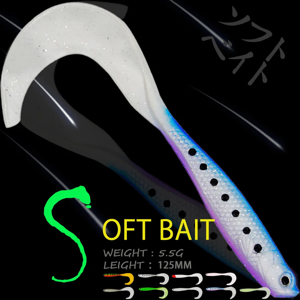 WALK FISH-señuelo de pesca suave de goma Artificial, Wobblers de cola Flexible, gusano de silicona, Swimbait, carpa, Lucio, cebo Jig, 1 piezas, 12,5 CM/5,5G
