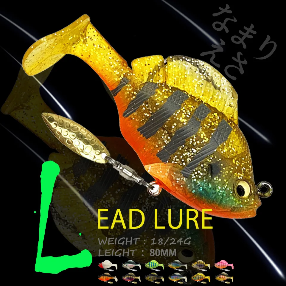 WALK FISH Señuelo de Plomo con Cola en T, Señuelo Suave de Silicona con Spinner de Goma, Wobbler, Swimbait, Aparejos de Pesca, 10g, 14g, 18g, 24g