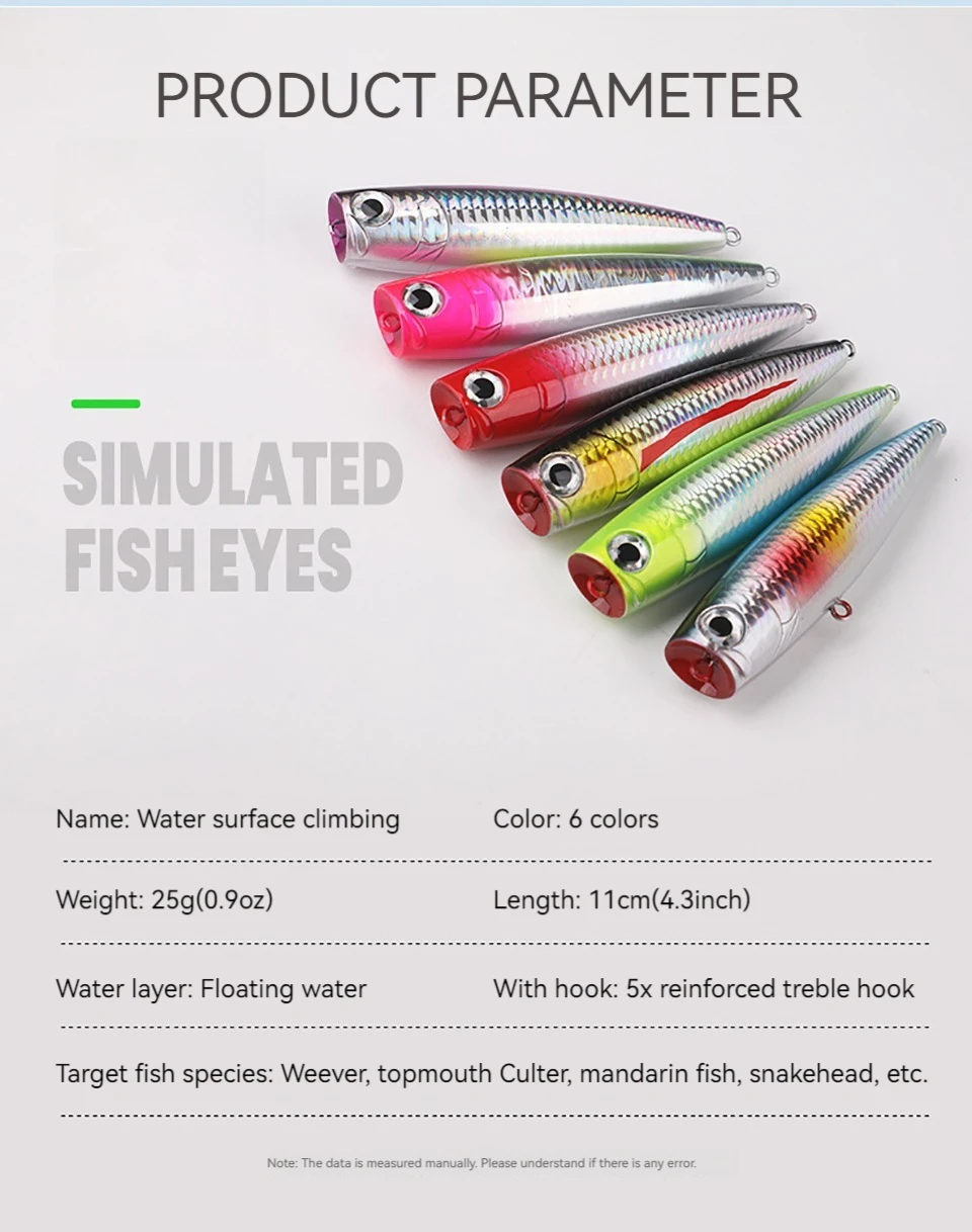 WALK FISH-Señuelo Popper flotante de 110mm y 25G, señuelo de pesca de superficie, cebo duro plástico, aparejos de pesca