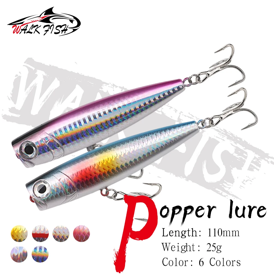 WALK FISH-Señuelo Popper flotante de 110mm y 25G, señuelo de pesca de superficie, cebo duro plástico, aparejos de pesca