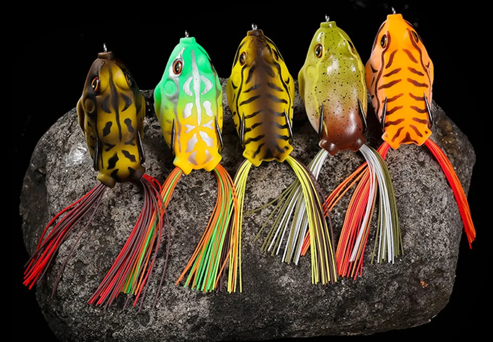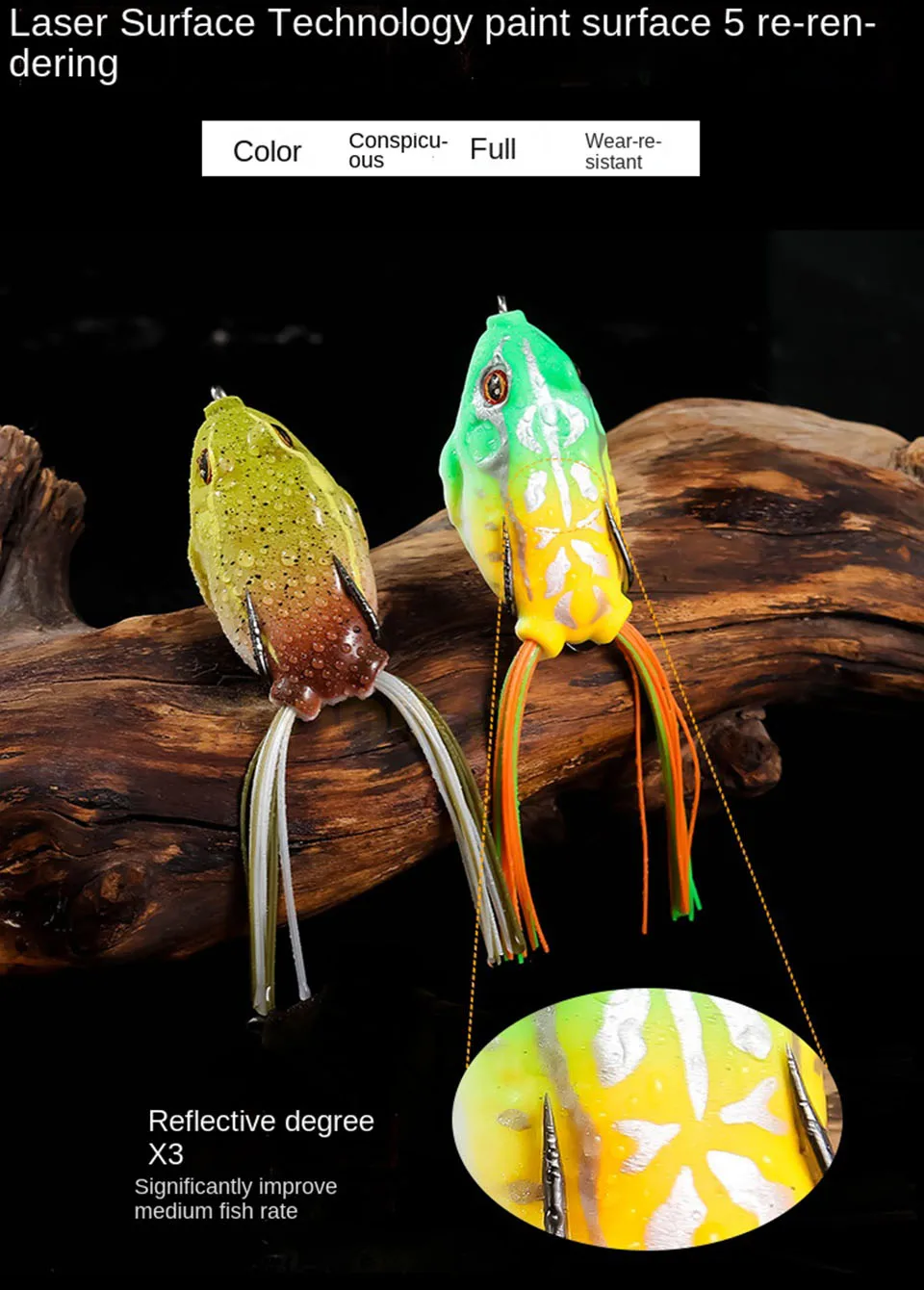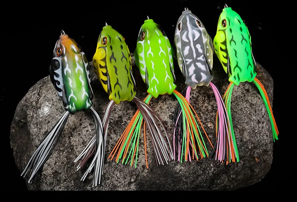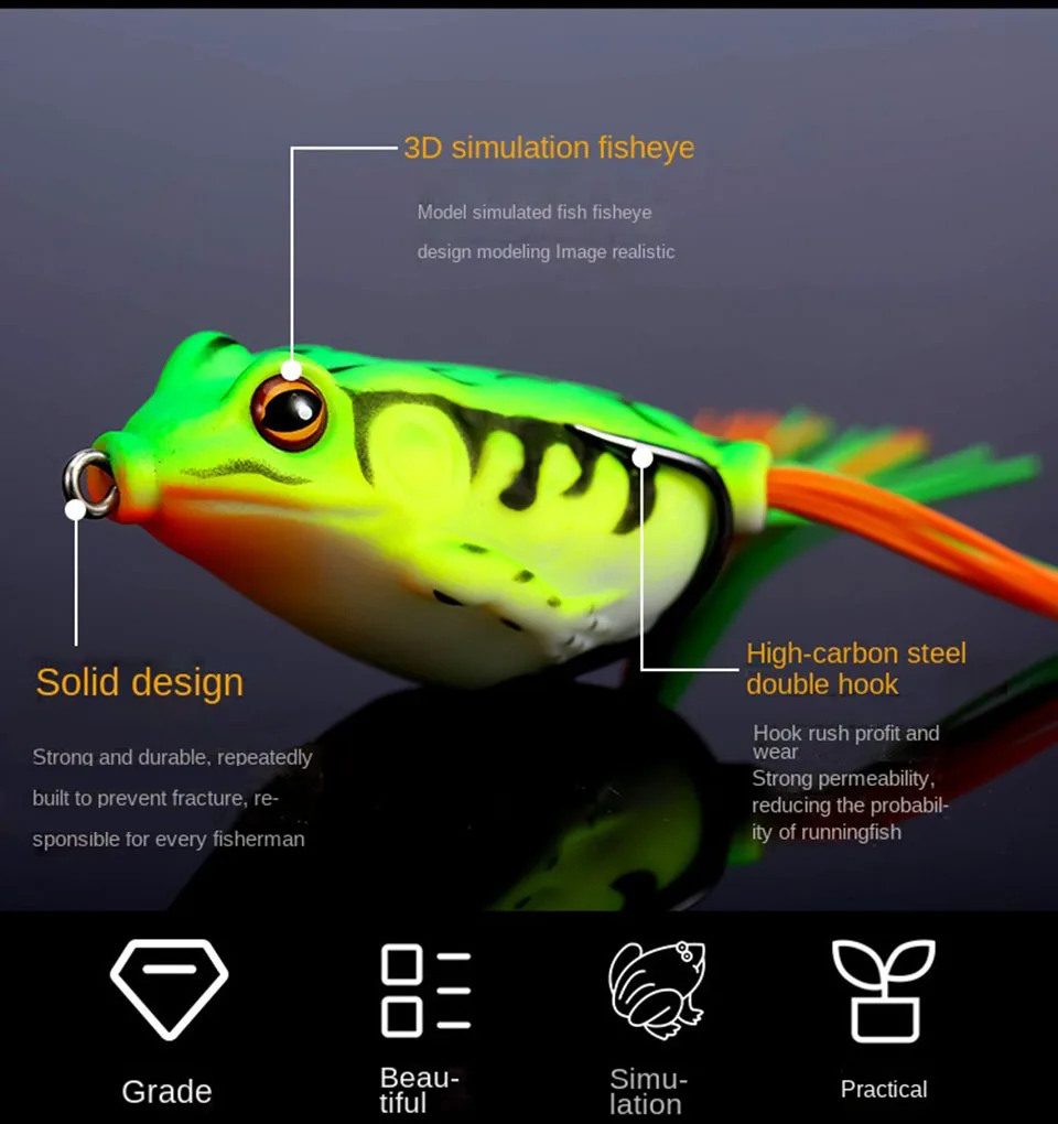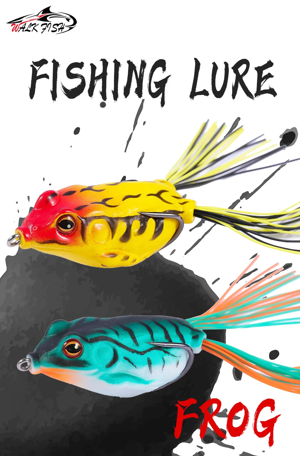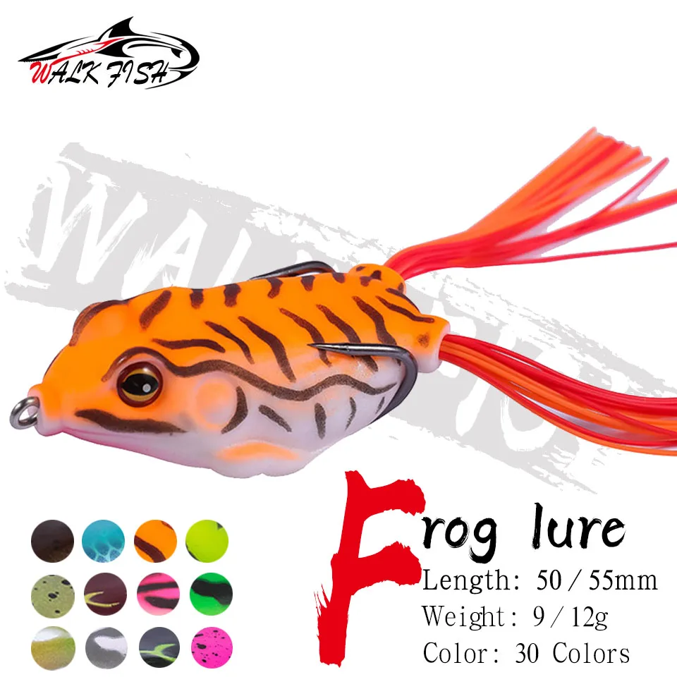 WALK FISH-señuelo de rana de 9G y 12G, cebo de tubo suave de plástico con anzuelos de pesca, ojos artificiales 3D, Topwater Ray Frog, 1 unidad