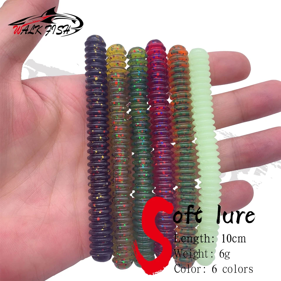 WALK FISH-señuelo suave de 4 piezas, gusano de tierra, 100mm, 6g, tornillo de rosca, cebo de Pesca, gusano de hundimiento, simulación, aparejo de tiro descendente, Jigging