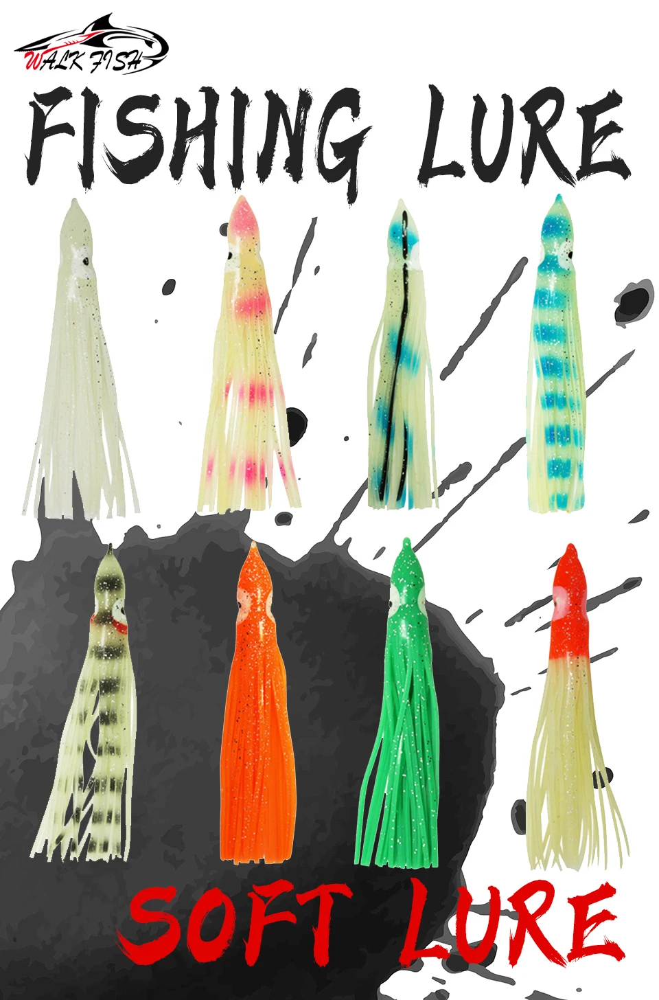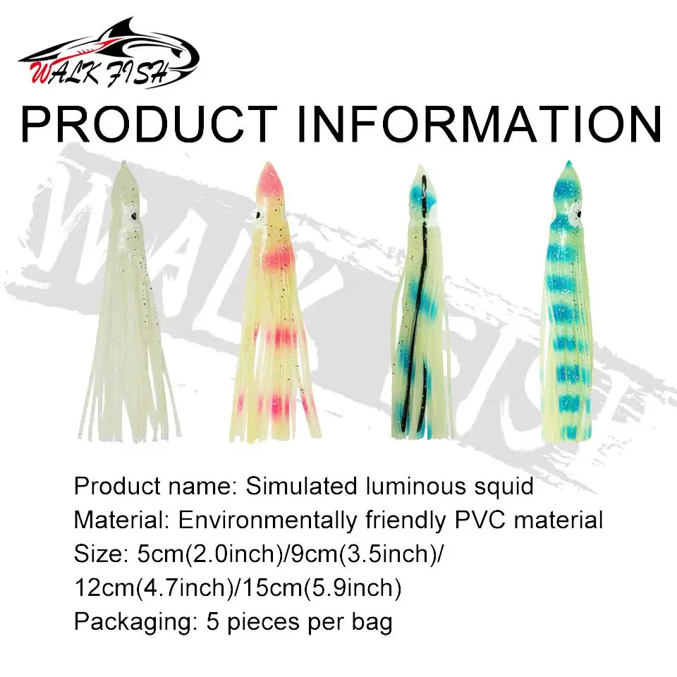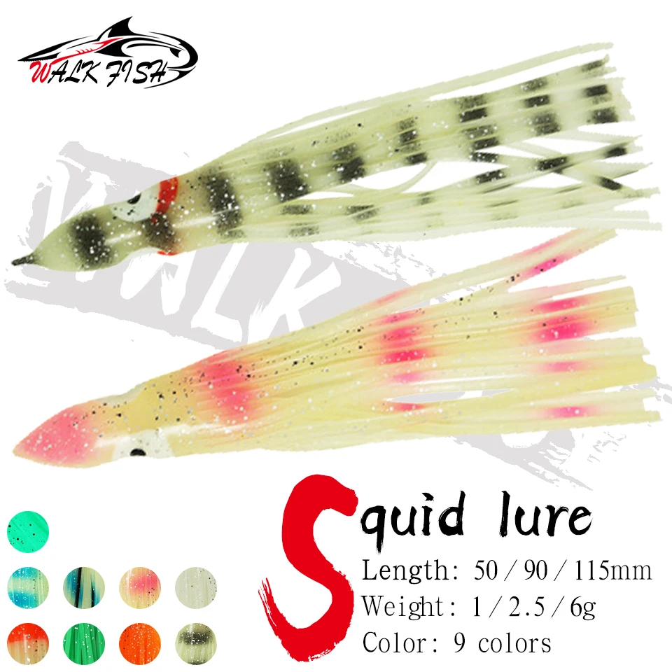 WALK FISH-Señuelo de calamar suave, faldas luminosas de 5cm, 9cm, 115cm, cebo artificial, Wobblers, señuelos de pez vela, calamar, pulpo, Marlin, cebos