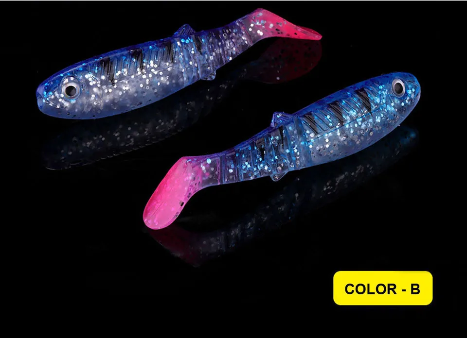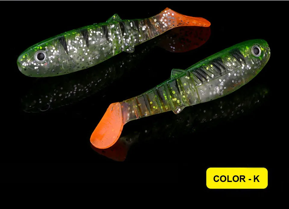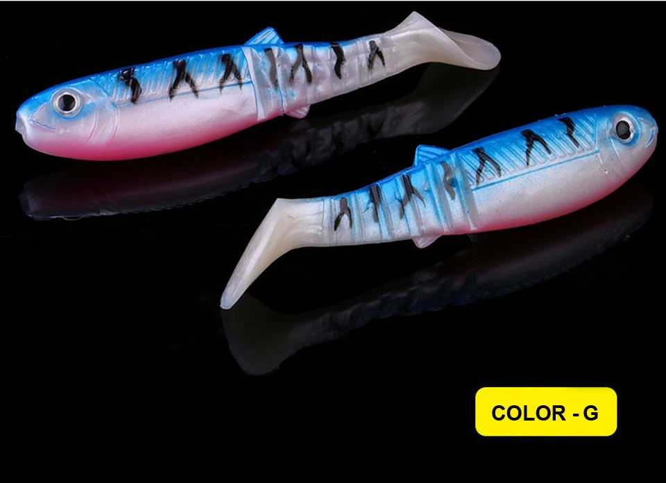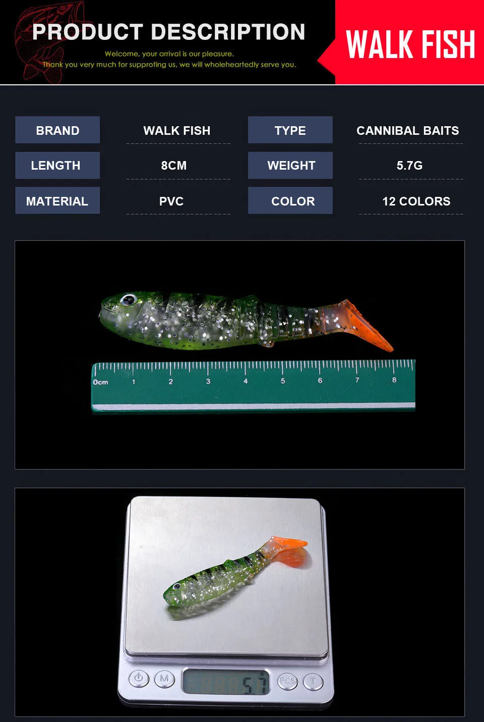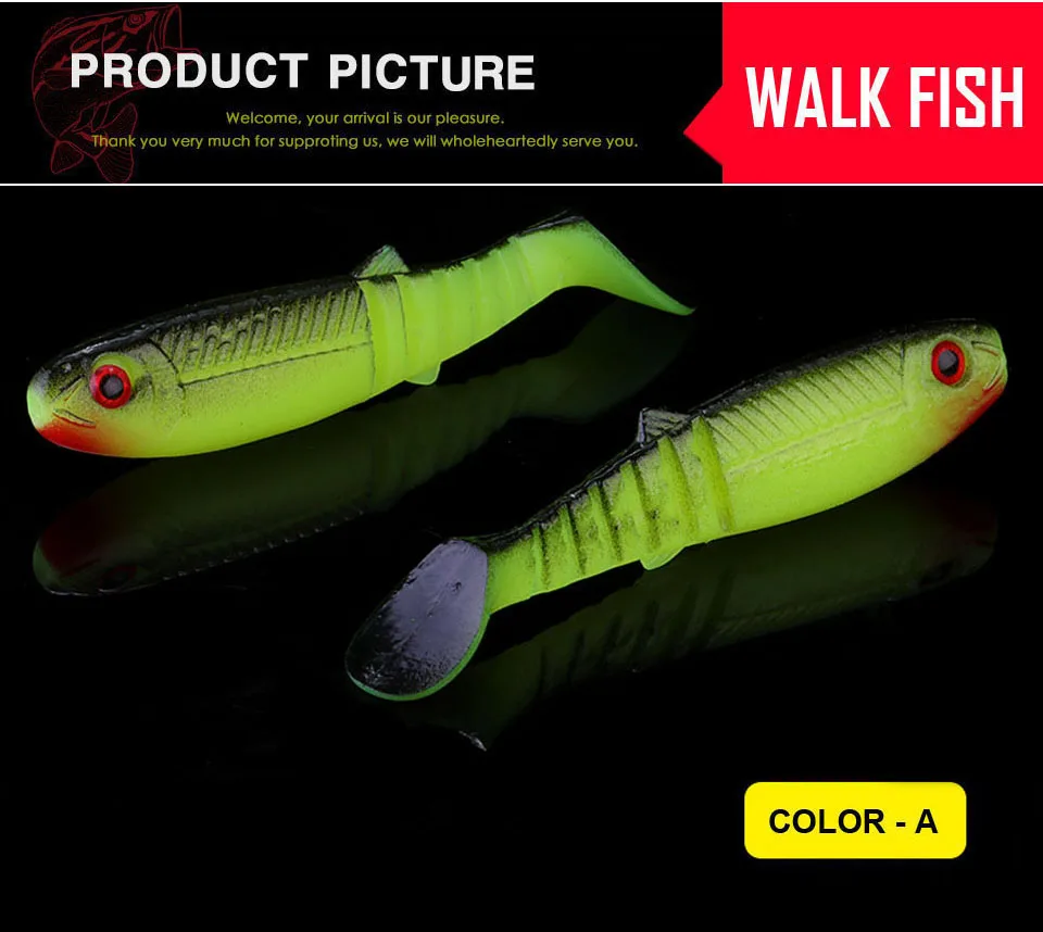 WALK FISH-señuelos artificiales blandos, cebos de pesca, cebo de silicona, cola en T, Wobblers, 80mm, 5,7G, lote de 4 unidades