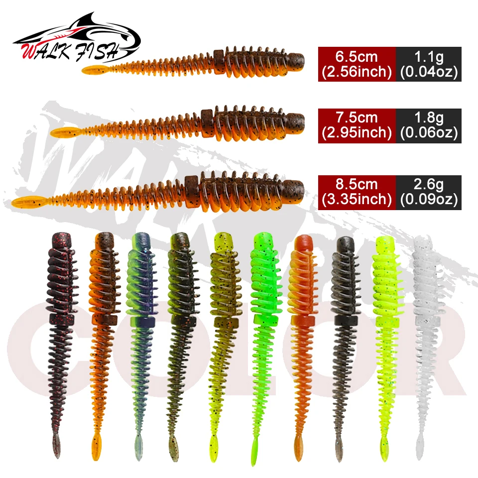 WALK FISH-Señuelos blandos de 8 Uds., 8,5 cm, 2,6g, hilo TPE, anzuelo de gusano, Pesca de carpa, Crankbait, equipo Swimbait, cebo de silicona con sabor a pescado