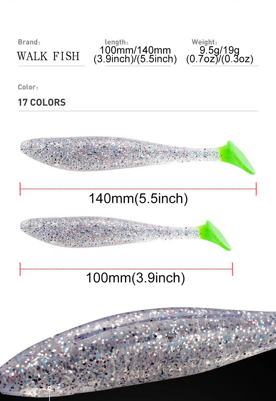 WALK FISH 1, 100mm/9,5G, 140mm/19G, recién llegado, señuelos blandos, Artificial cebo de pesca, cola en T, Leurre Shad, Swimbait, Wobblers, Fishbait