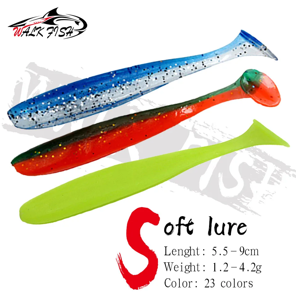 WALK FISH señuelos blandos artificiales de silicona, cebos de pesca de carpa, accesorio de plástico para pesca al aire libre, 55/63/70/90/120mm, 4/10 unidades