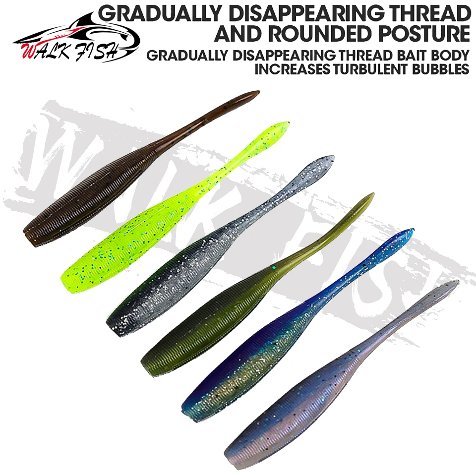 Señuelos blandos de pesca WALK FISH, 6 uds., 7,5cm, 2,5g, cebos de plástico artificiales de silicona, Pesca de carpa, señuelo de lubina, Wobblers hundidos