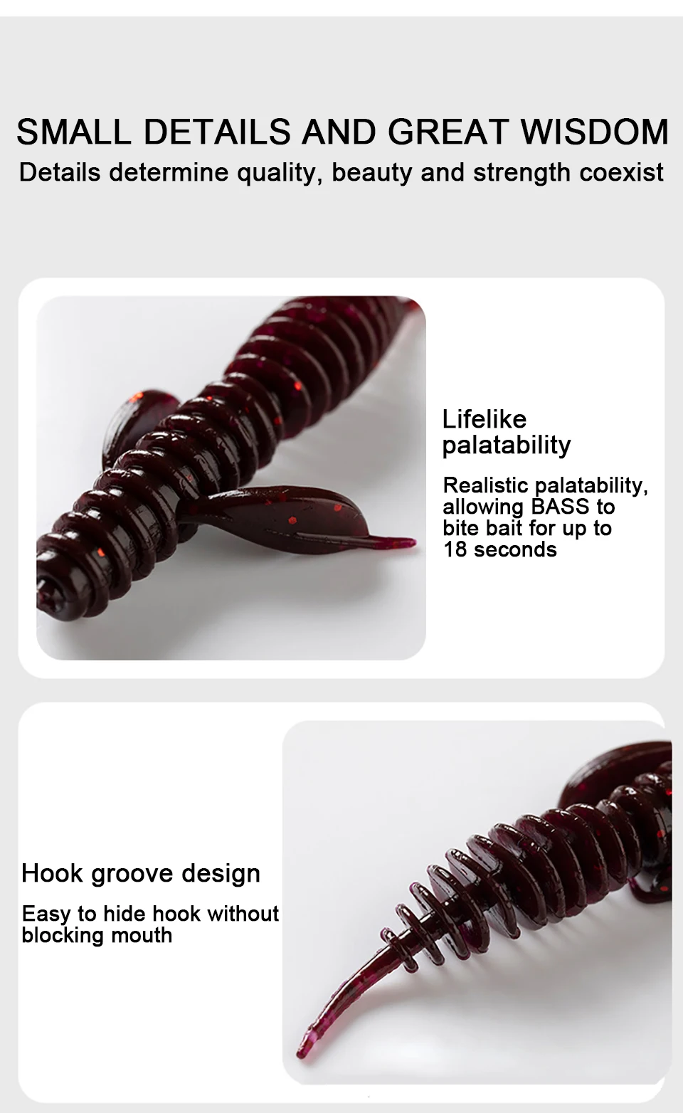 WALK FISH Señuelos Blandos de Plástico, Señuelos Larva de 6,2 cm, 1,5g, Swimbaits Flotantes de Agua Dulce, Cebo Suave de Silicona, para Pescar Gusano, 12 piezas
