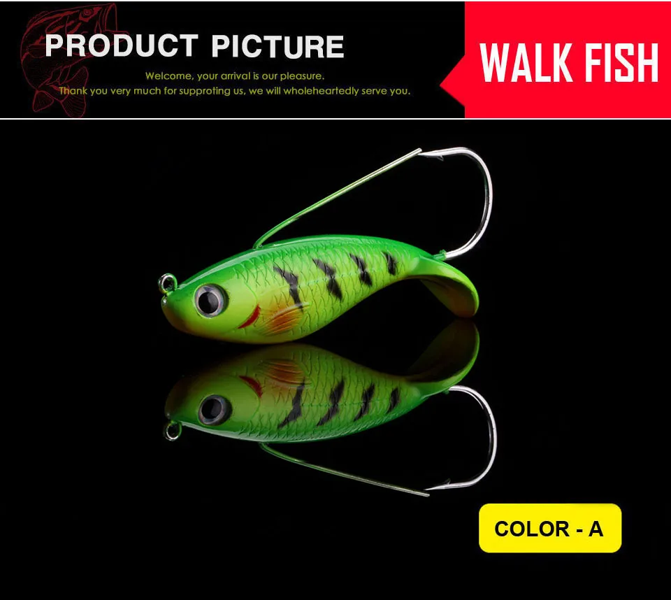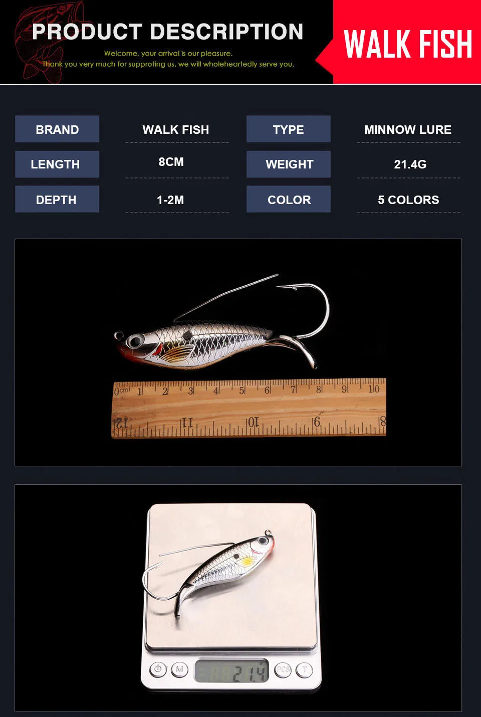 WALK FISH-SEÑUELOS duros artificiales, anzuelos de 1 pieza, 8cm, 21,4g, VIB, anzuelo único, cuerpo láser, aparejos de pesca realistas