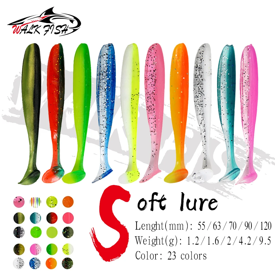 WALK FISH 10 Uds 55mm 70mm 90mm señuelos de gusano suave cebo de silicona pez de mar Pva Swimbait Wobblers productos para pesca aparejos artificiales