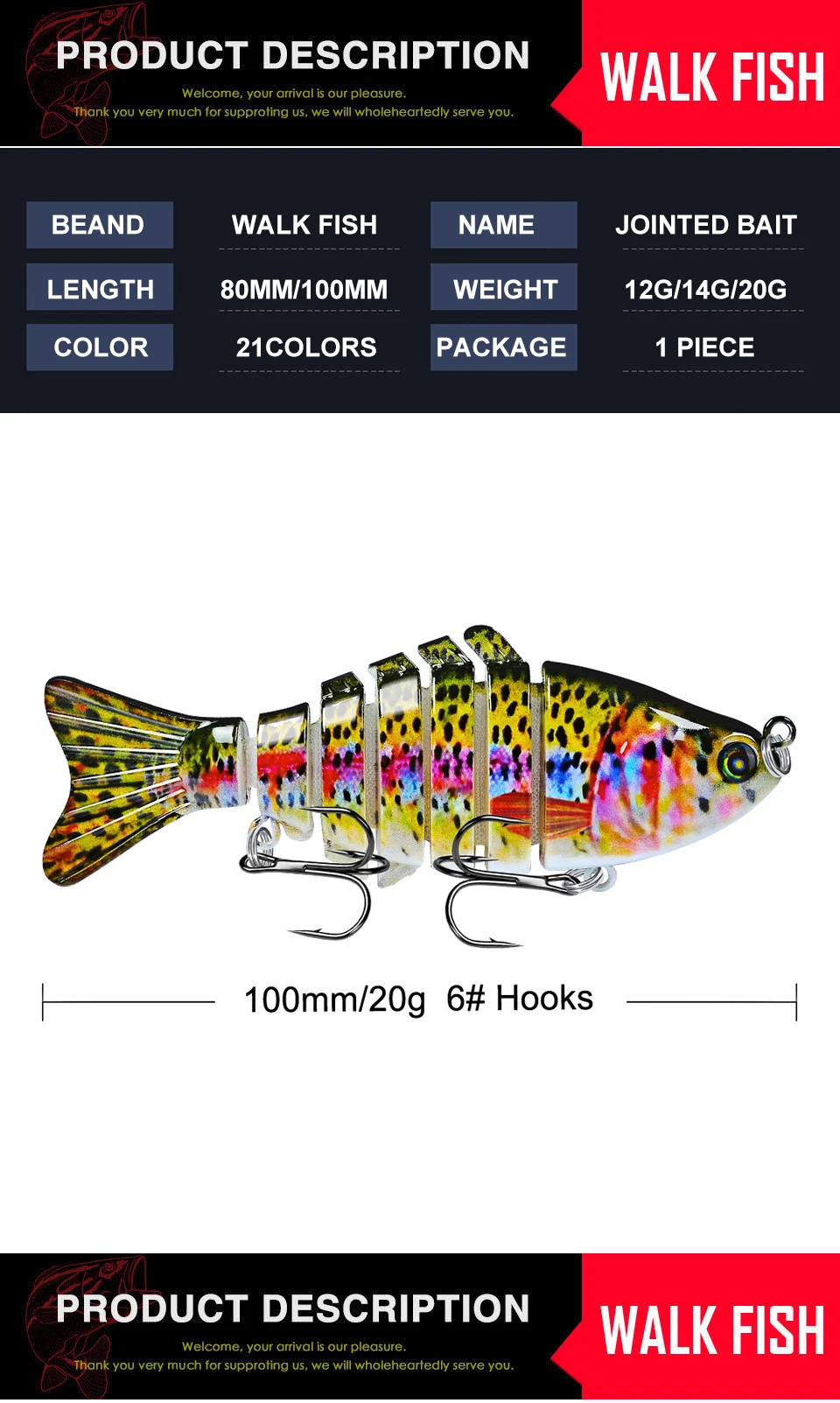 WALK FISH-Señuelos de Pesca de 6 segmentos, cebo Artificial japonés, accesorios de pesca, 12G/14G/20G