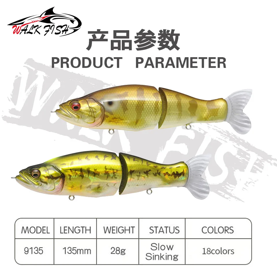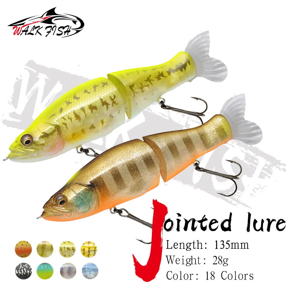 Señuelos de pesca WALK FISH, 135mm, 28g, pececillo articulado, Wobblers, cuerpo de ABS con cola suave, cebos de natación, señuelo suave para lucio y lubina