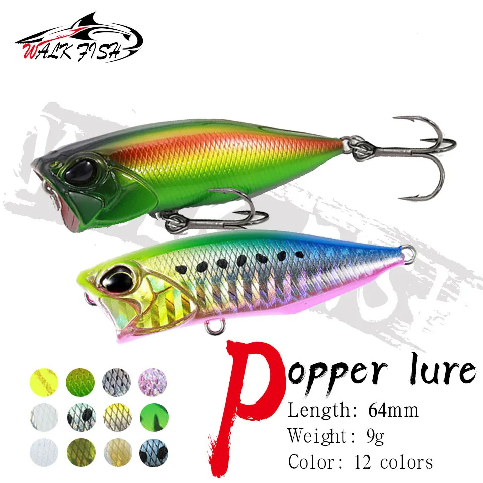 WALK FISH-Señuelos de Pesca flotantes, cebo duro de 64mm, 9g, ojos 3D, Topwater, lubina, trucha, Lucio, Wobblers artificiales, 1 piezas