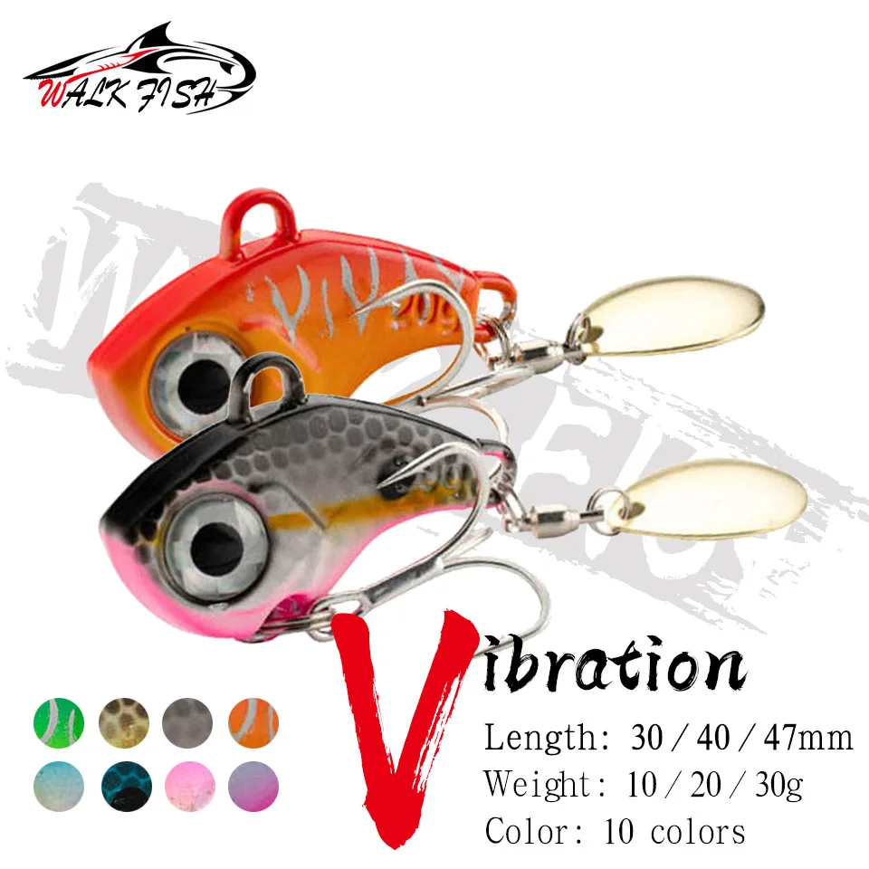 WALK FISH Señuelos de Pesca giratorios, cebo giratorio de Metal, VIB, vibración, cuchara giratoria, plantilla, 10g, 20g, 30g, cebos duros artificiales, lentejuelas, 1 unidad