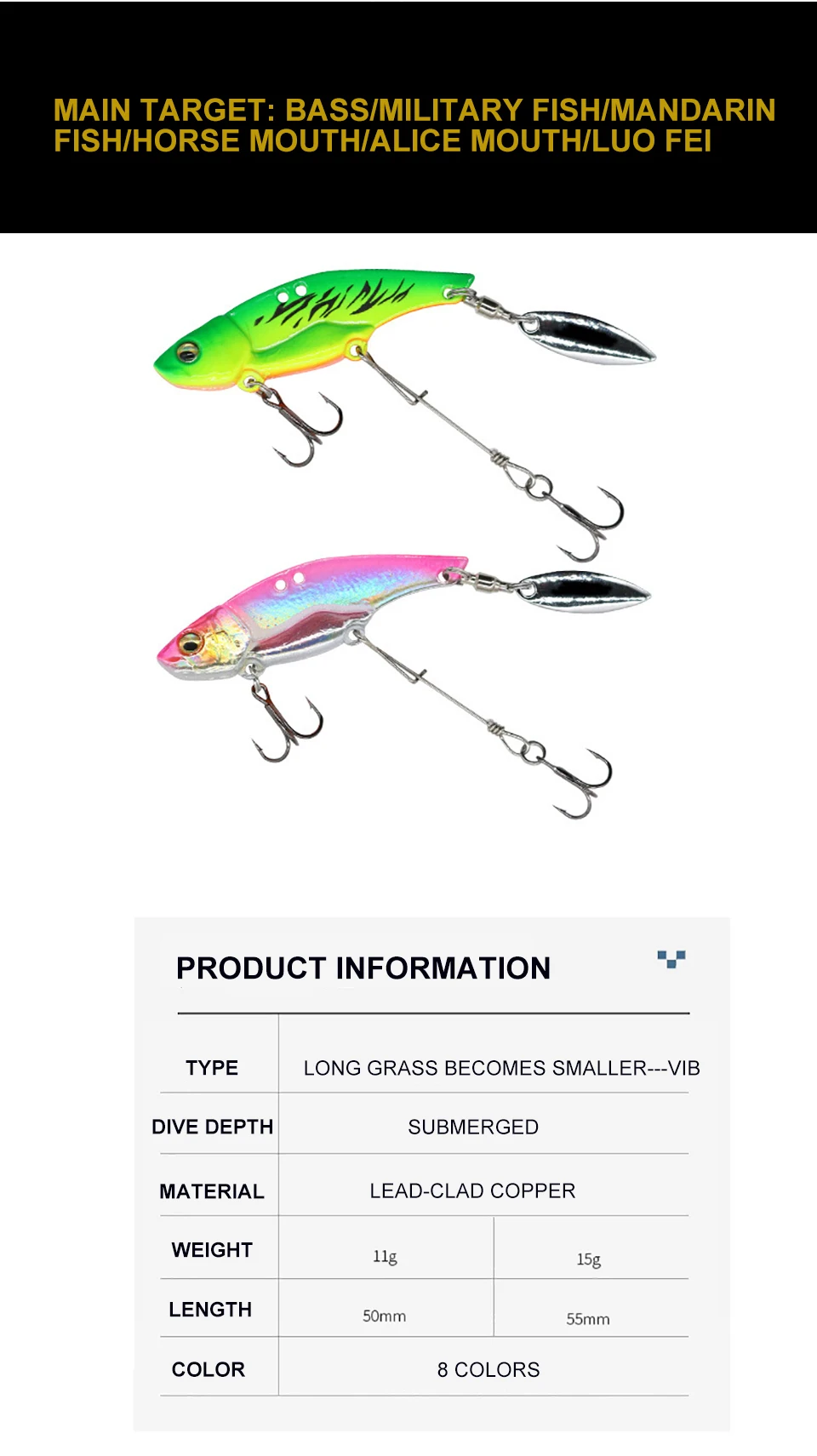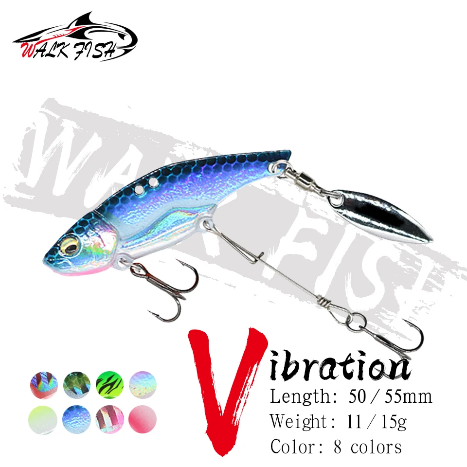 WALK FISH-Señuelos de Pesca giratorios, cebos duros de Metal VIB de 50mm y 55mm, con vibración giratoria, para Lucio, trucha, cuchara giratoria