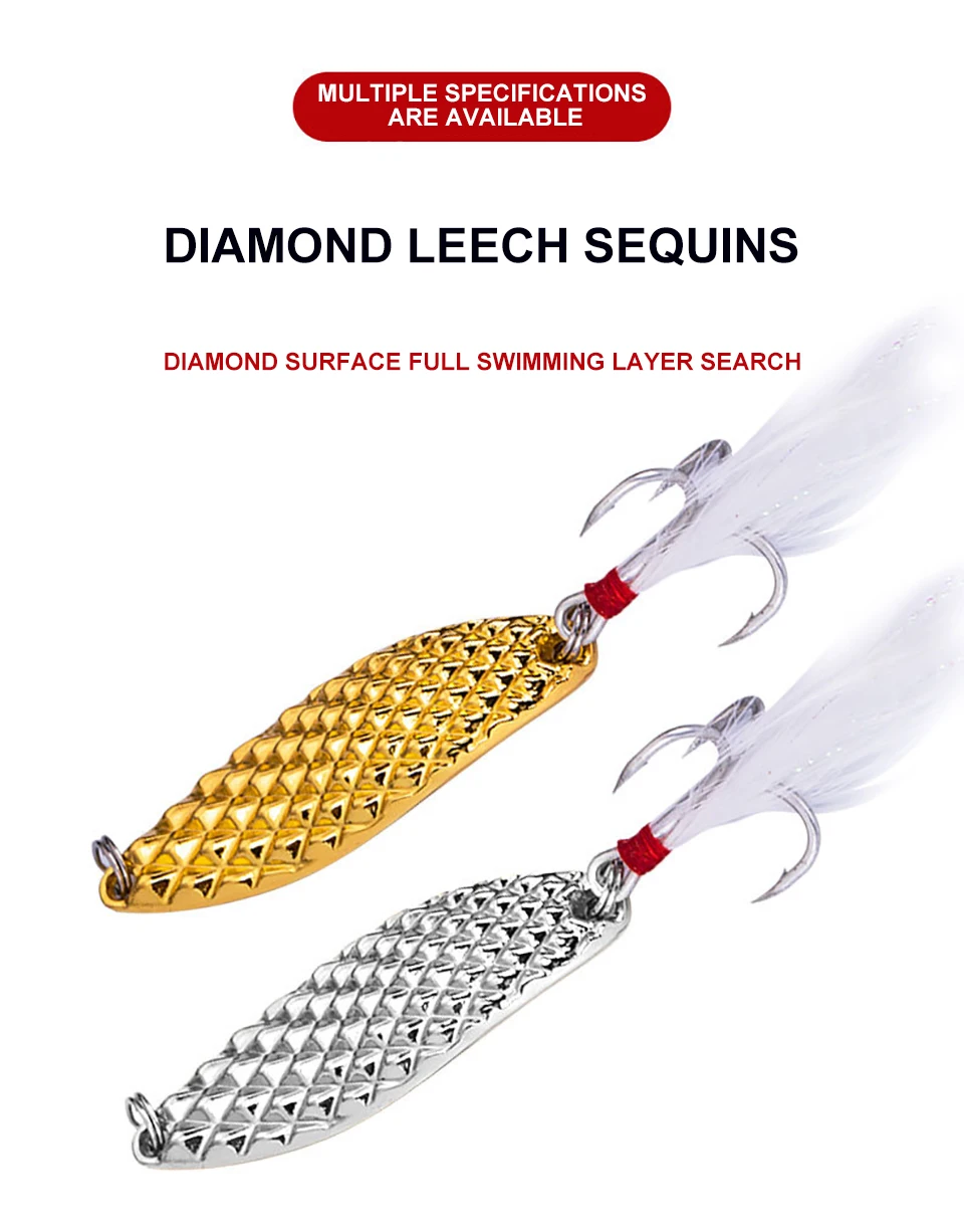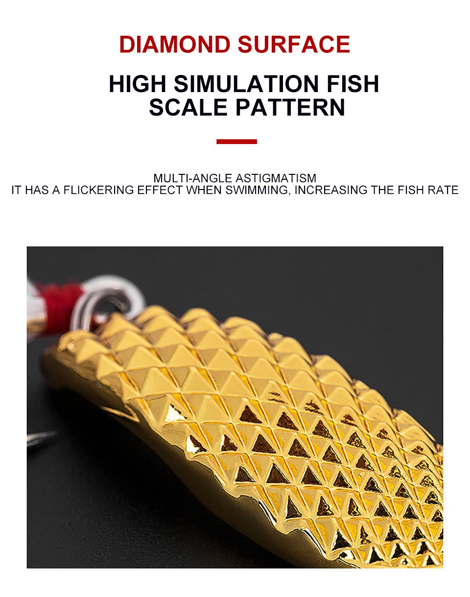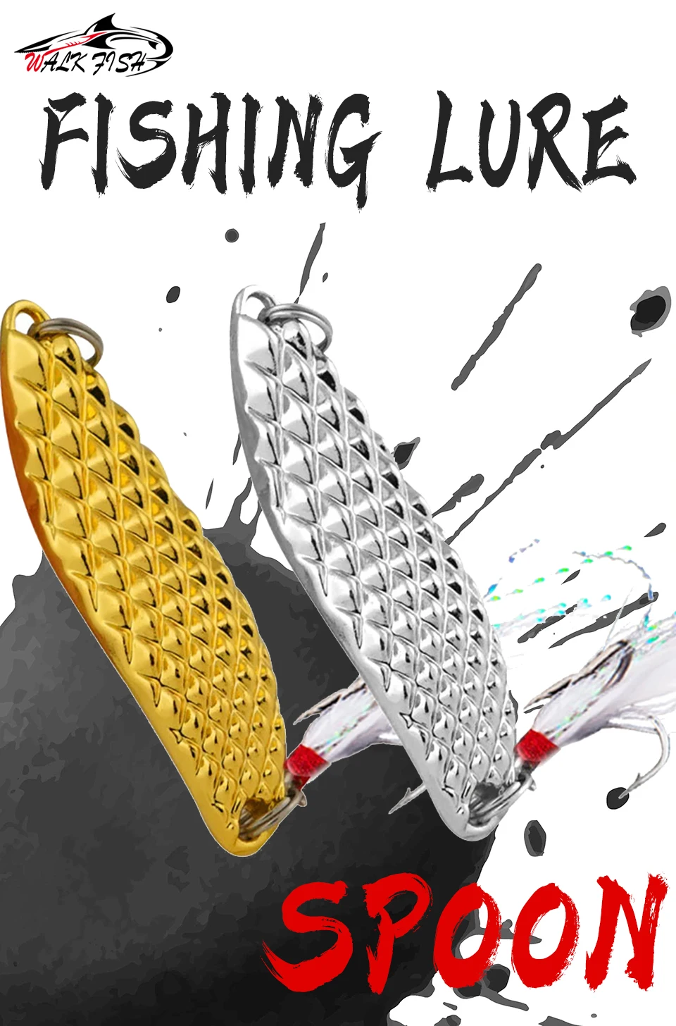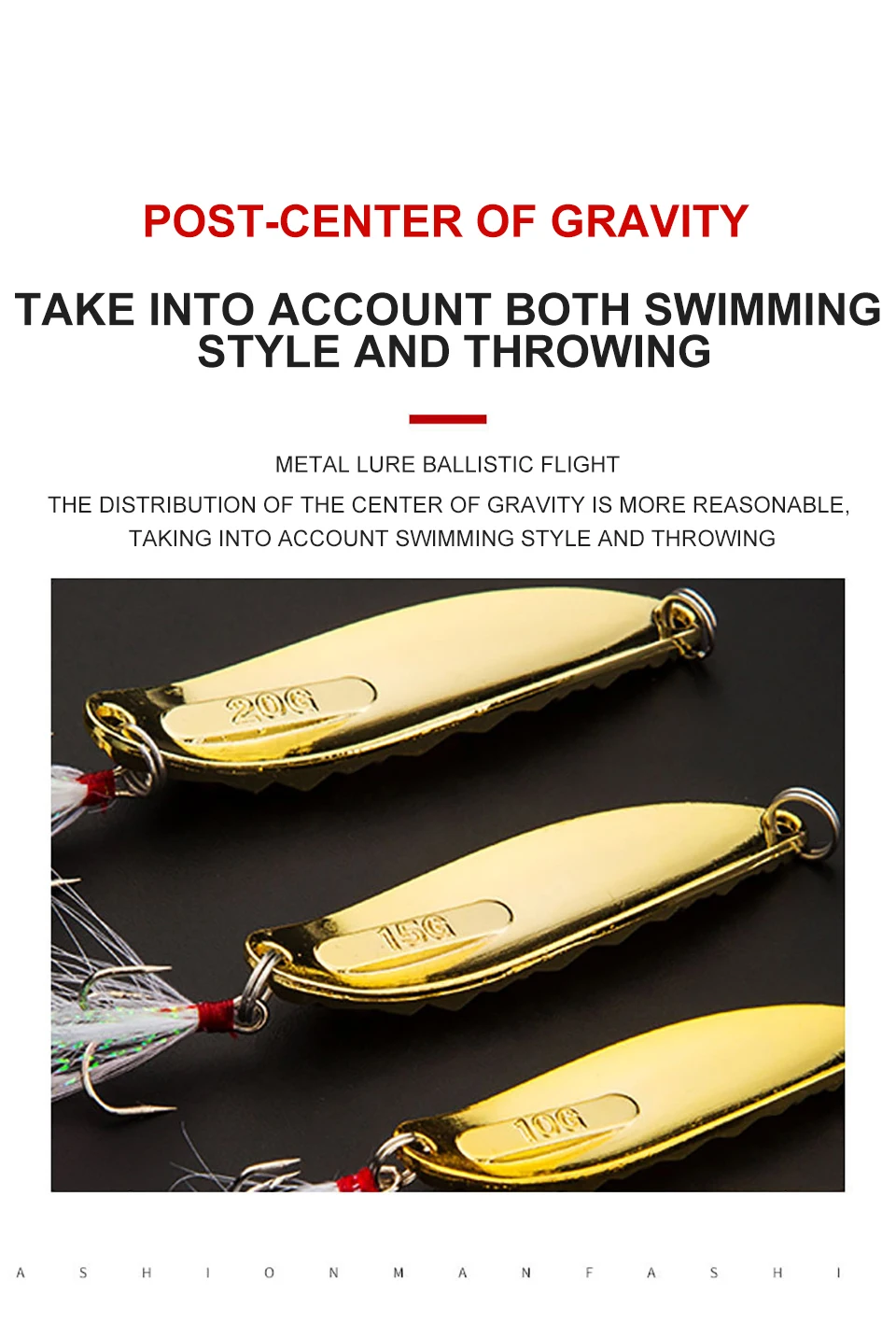 Anzuelo de pesca de caña 1 ud., anzuelo Artificial de plata y oro de 5g, 7g, 10g, 15g, 20g con anzuelo triple de pluma, trucha, Lucio, Lucio