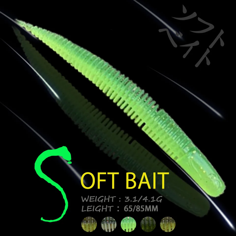 WALK FISH 65mm/85mm gusano Sway fideos gusano sonrisa cebo suave Señuelos de Pesca luz baile aguja cola recta flotante bajo Manda