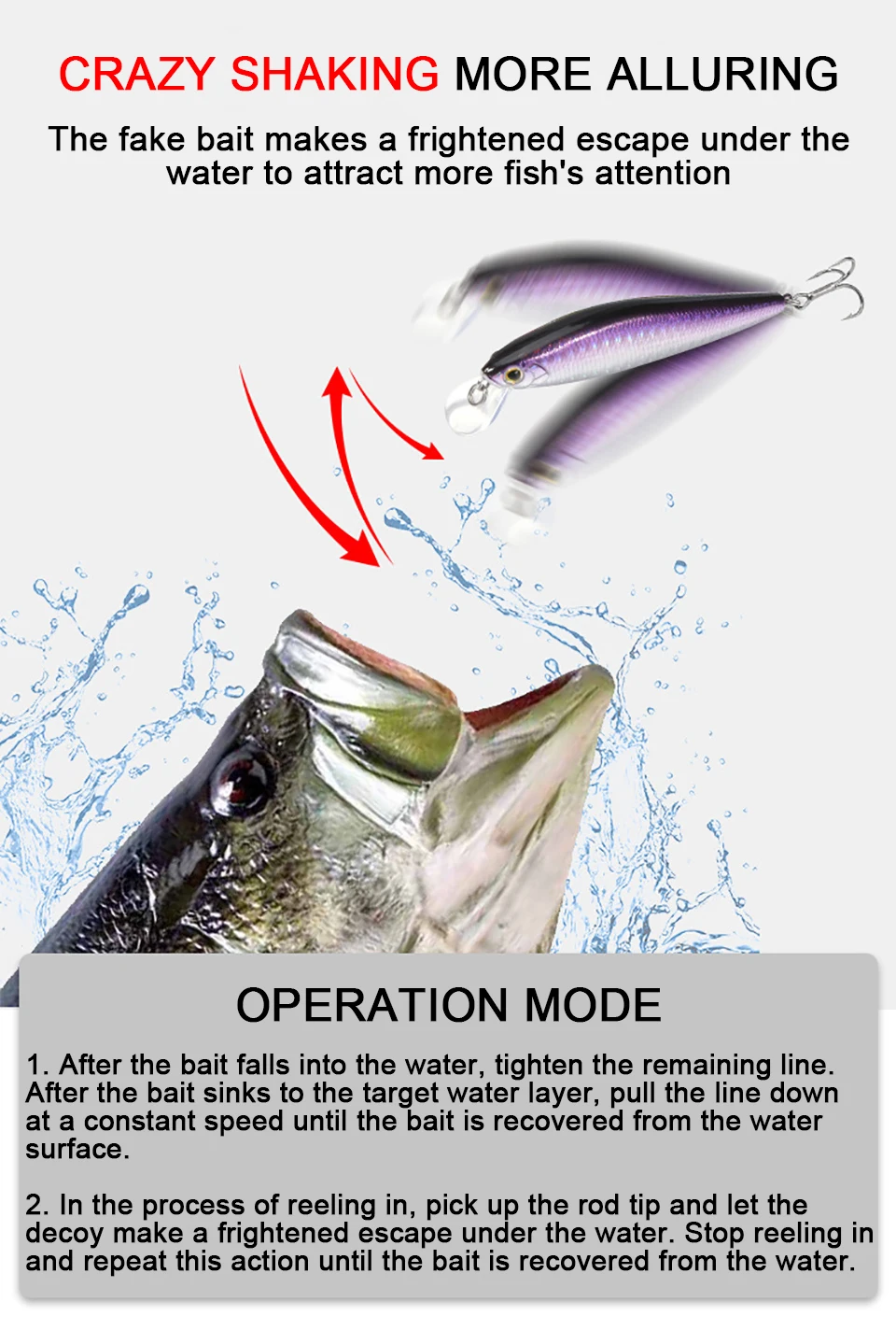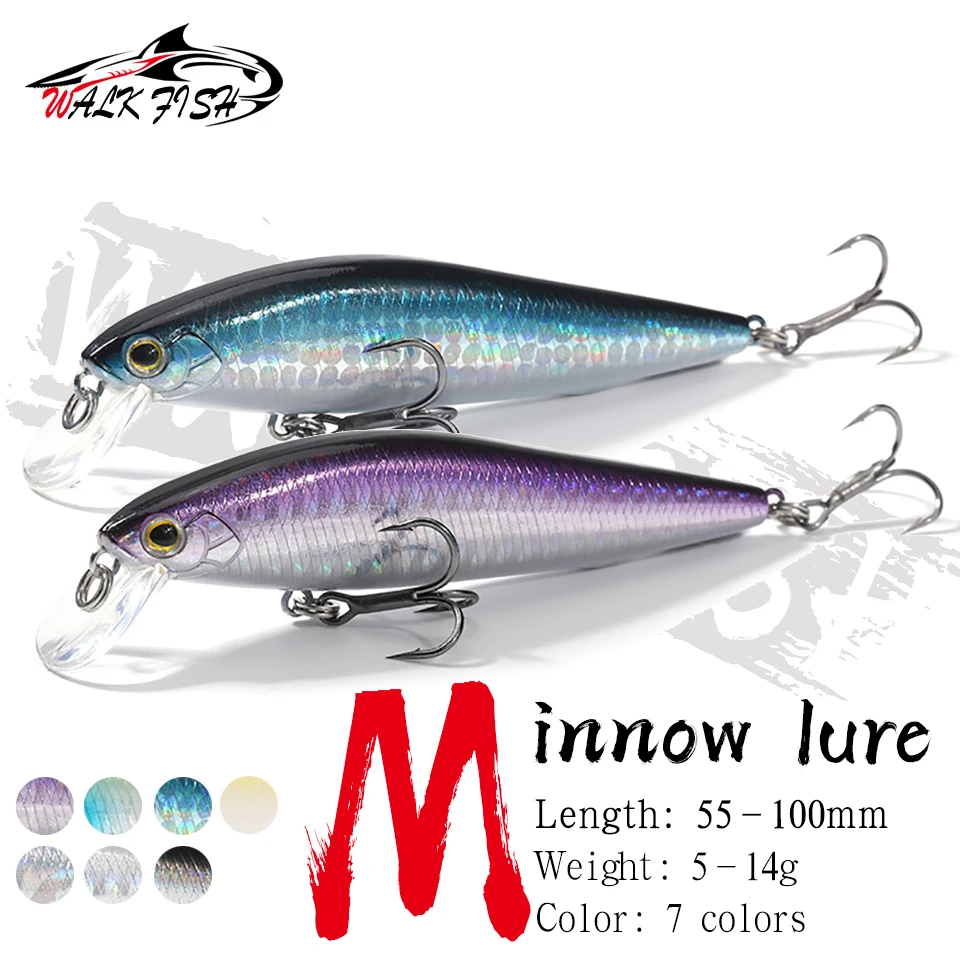 WALK Fish-Señuelos de Pesca de hundimiento lento, señuelos de trucha Minnow negros, Wobblers, Crankbaits, aparejos de Pesca, 5g, 7g, 10g, 14g, 1 unidad