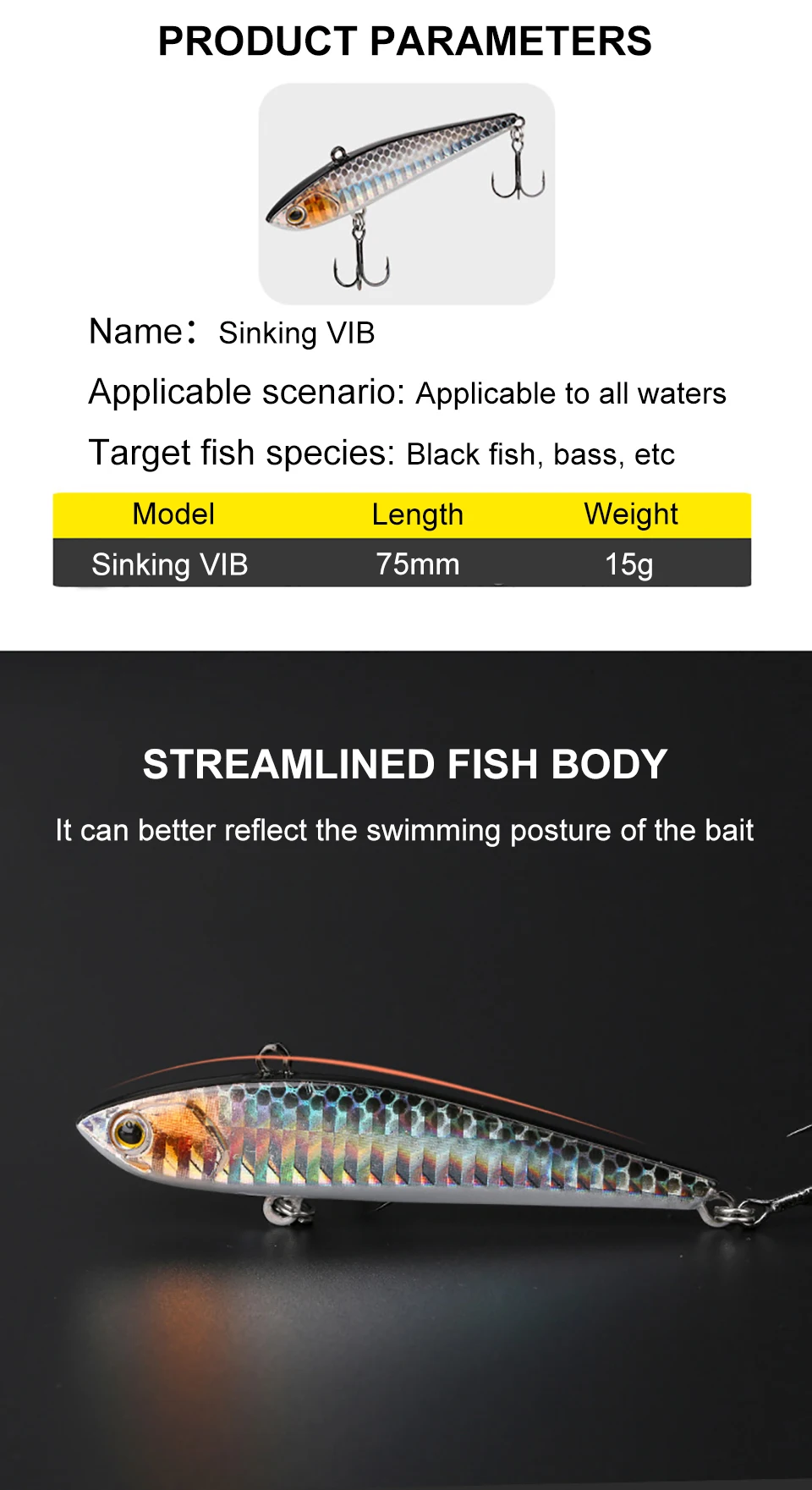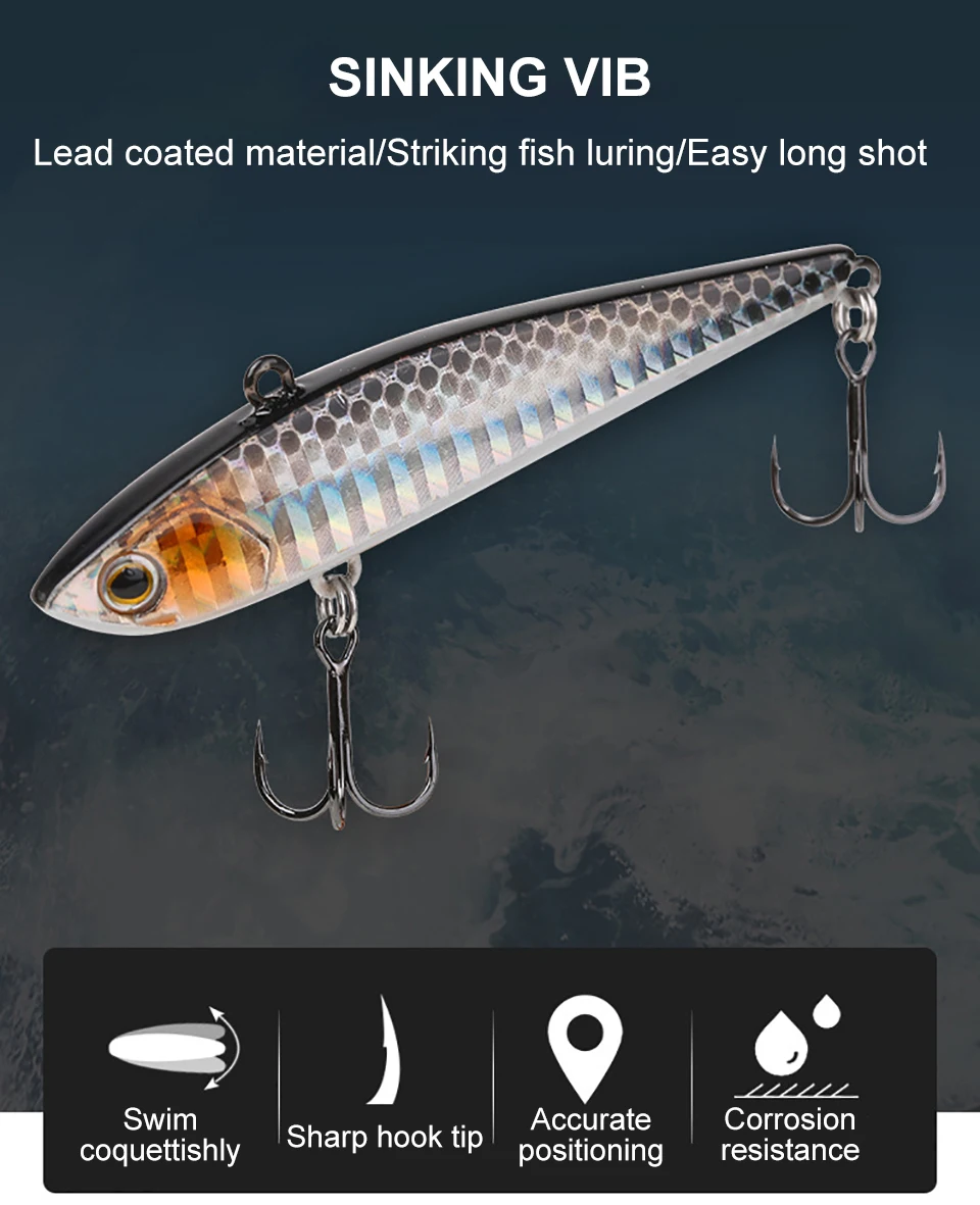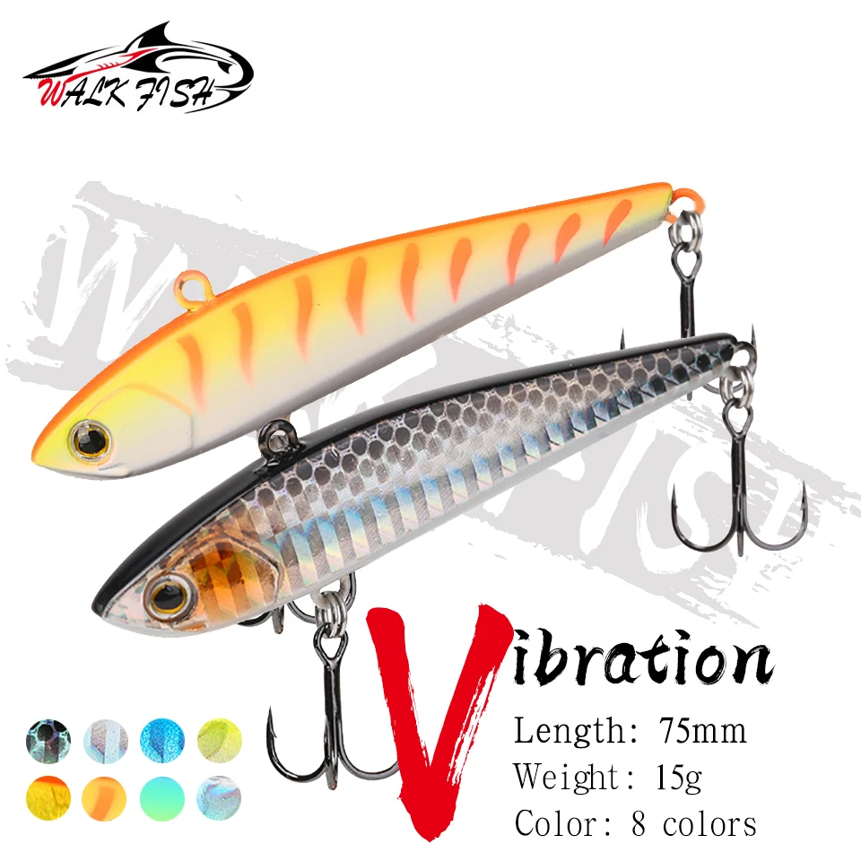 WALK Fish-Señuelos de Pesca de lubina VIB, 1 piezas, Mini ligeros de 75mm y 15g, con vibración de hundimiento, cebos duros de hielo, Wobblers para lucios