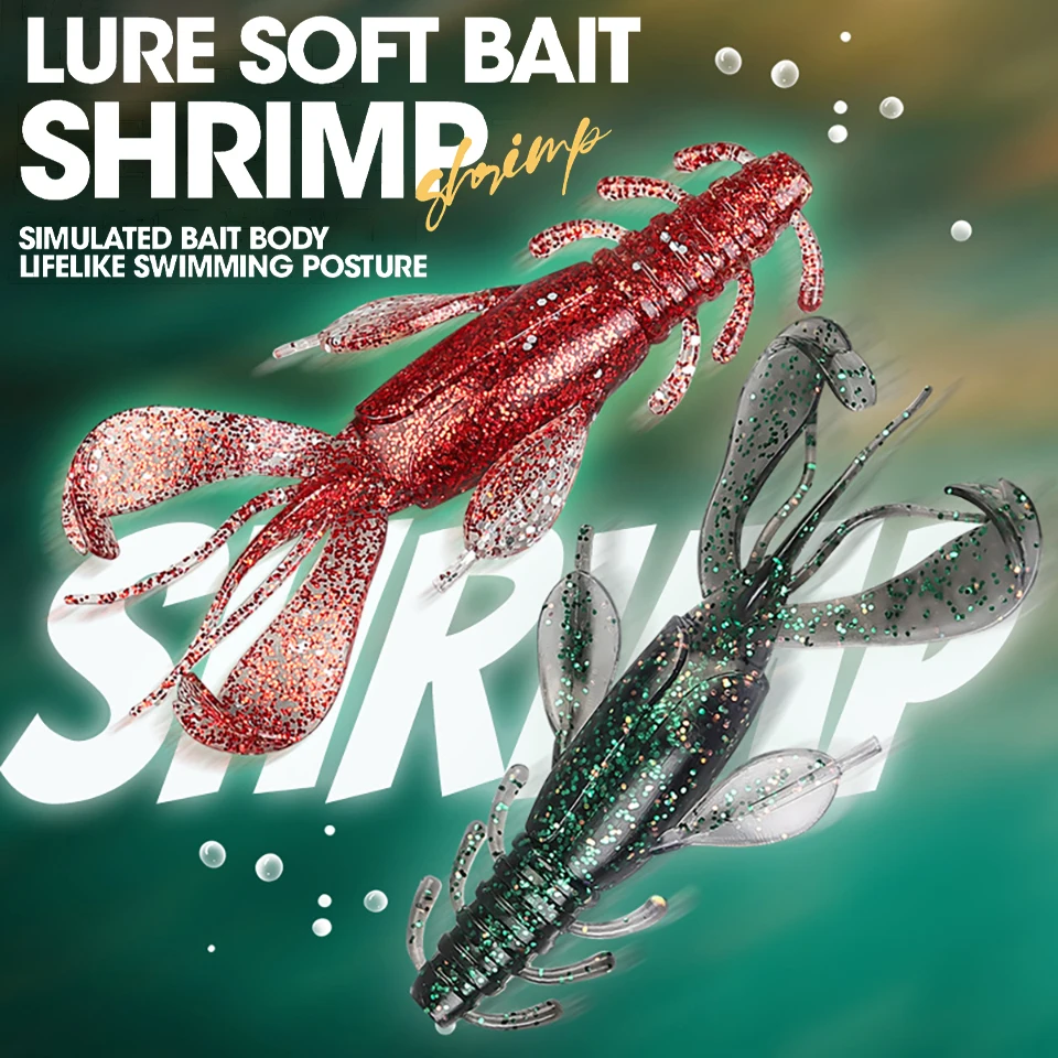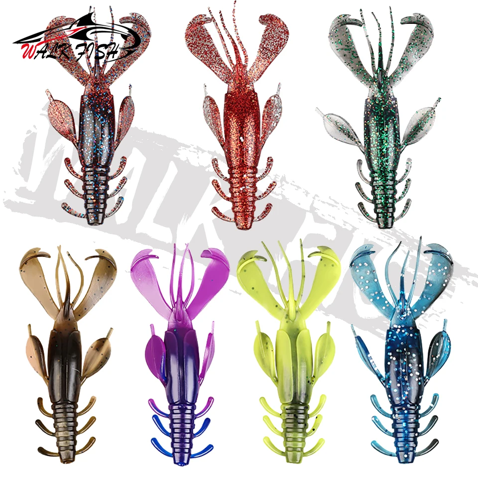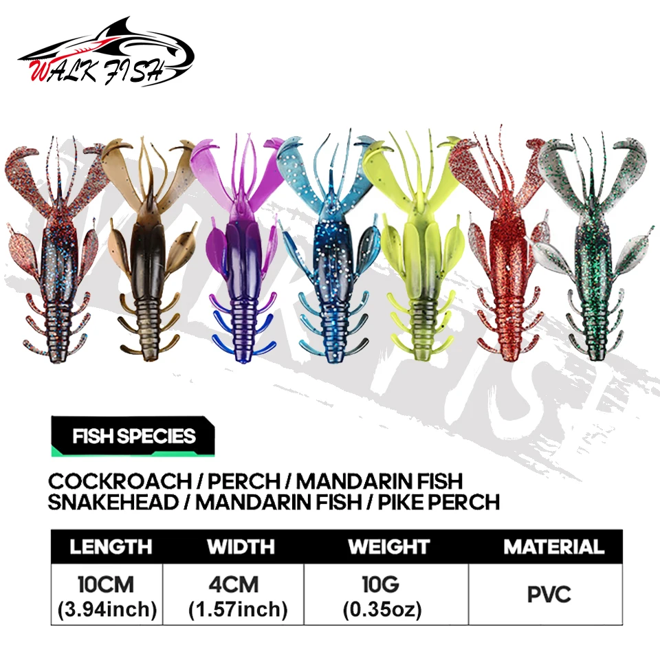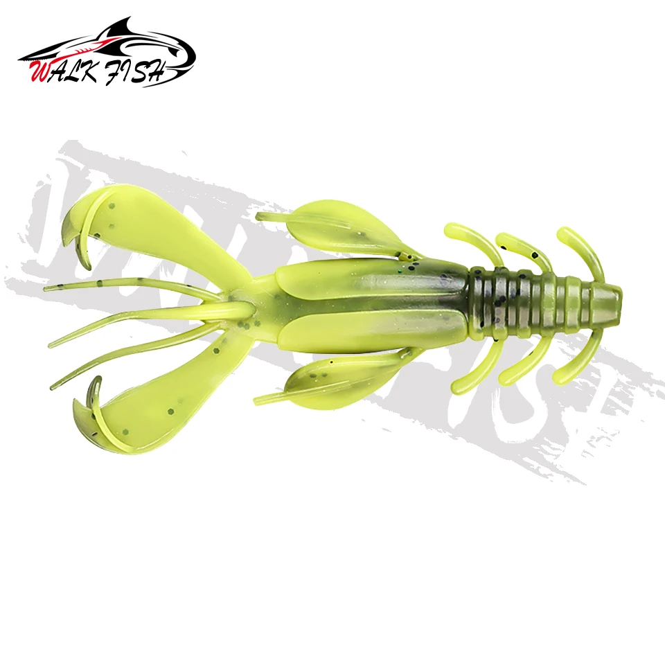 WALK FISH-Señuelos de Pesca de PVC blando, cebo Shirmp de 100mm y 10g, cebos de silicona Swimbait, cebo Artificial, aparejos de Pesca, 3 uds.