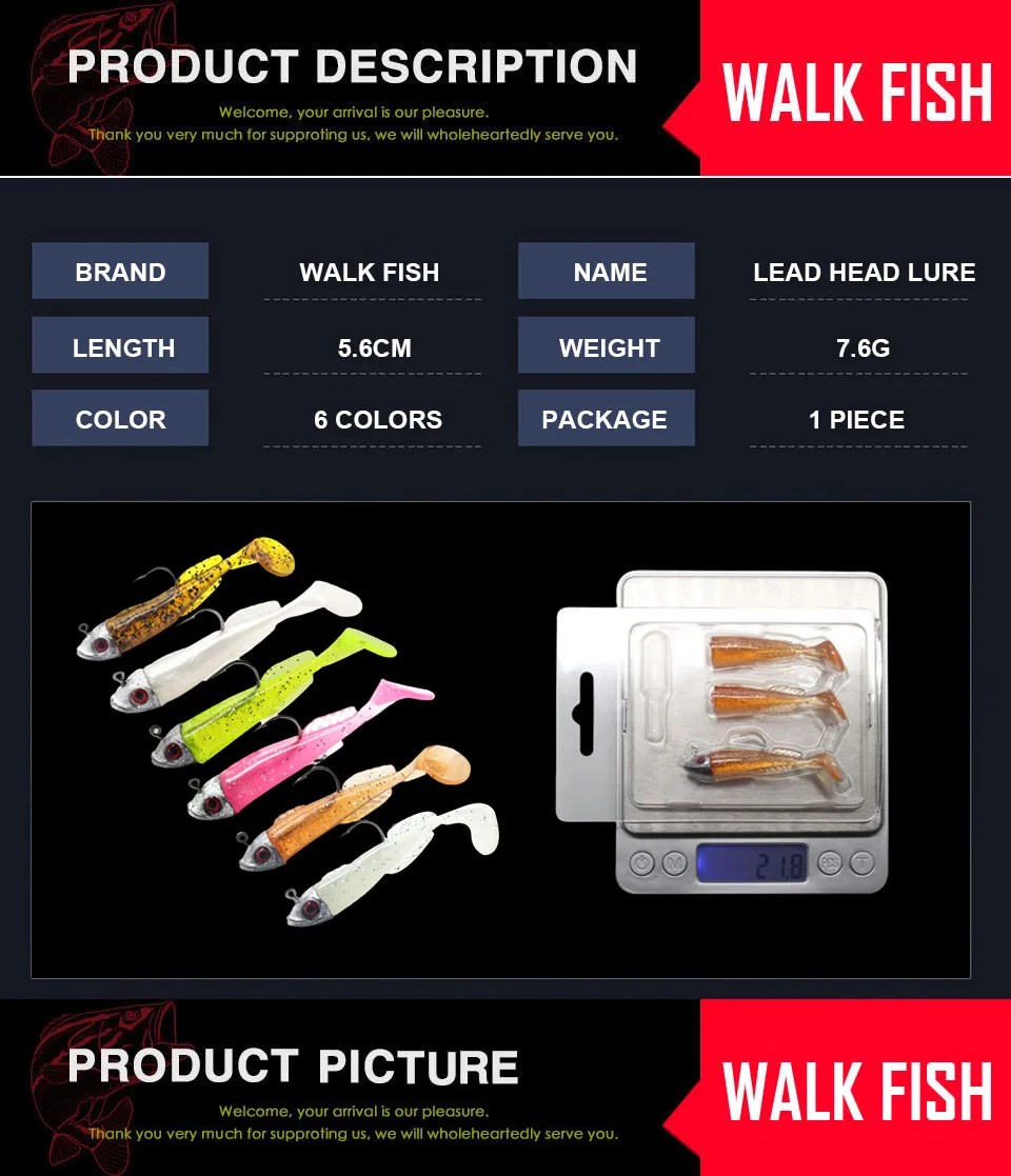 WALK FISH-Señuelos de Pesca de silicona, cabeza de plomo, 5,6 cm, 7,6g