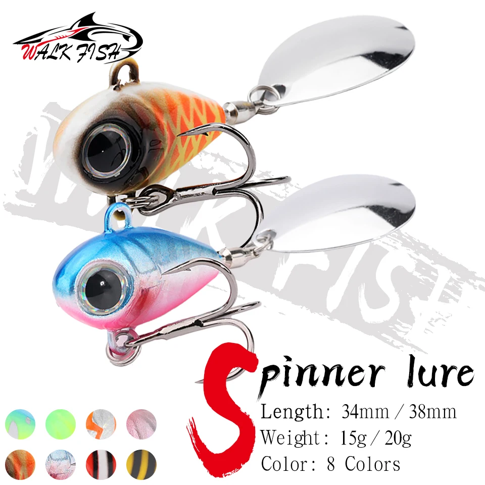 Señuelos de Pesca WALK FISH, 15g, 20g, cebo VIB, cuchara giratoria, plantilla de vibración, cebos duros artificiales, señuelo de Pesca con lentejuelas metálicas giratorias
