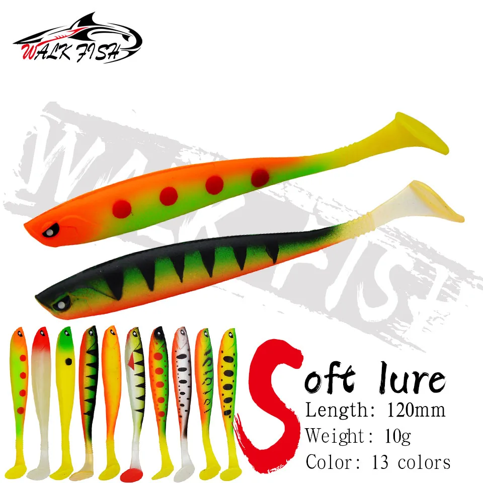 WALK FISH-Señuelos de Pesca Wobbler, cebo blando de 10g y 12cm, Swimbaits de Japón Shad, cebo Artificial, cabeza de plantilla, pesca con mosca, goma de silicona