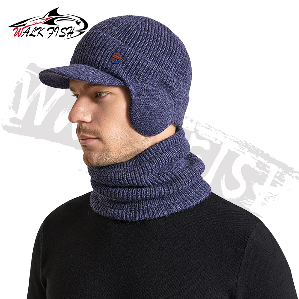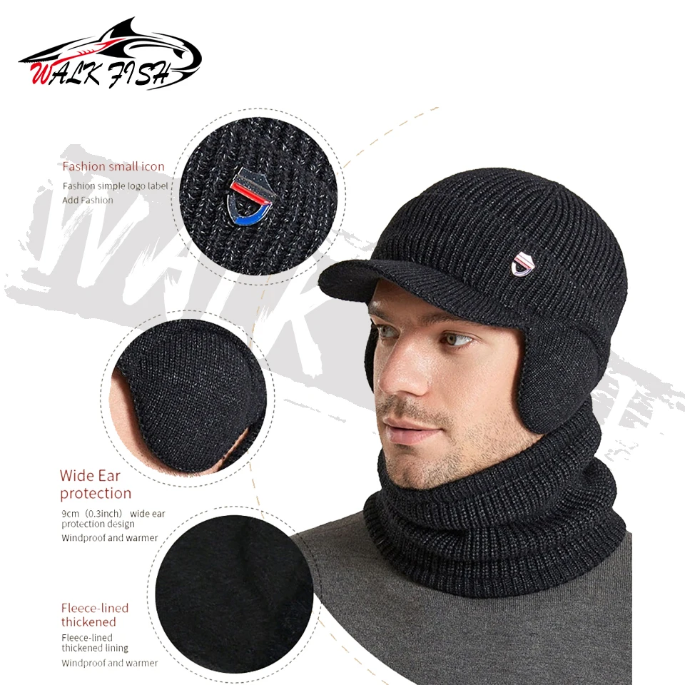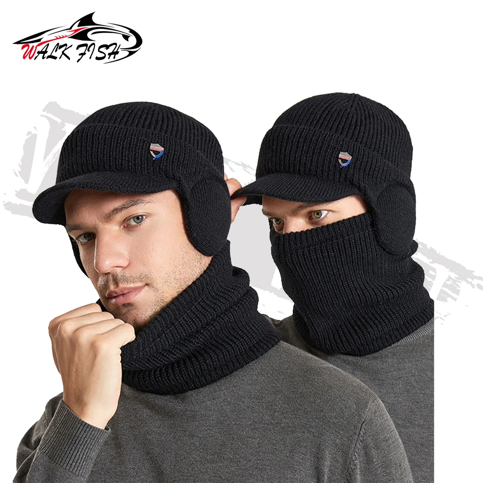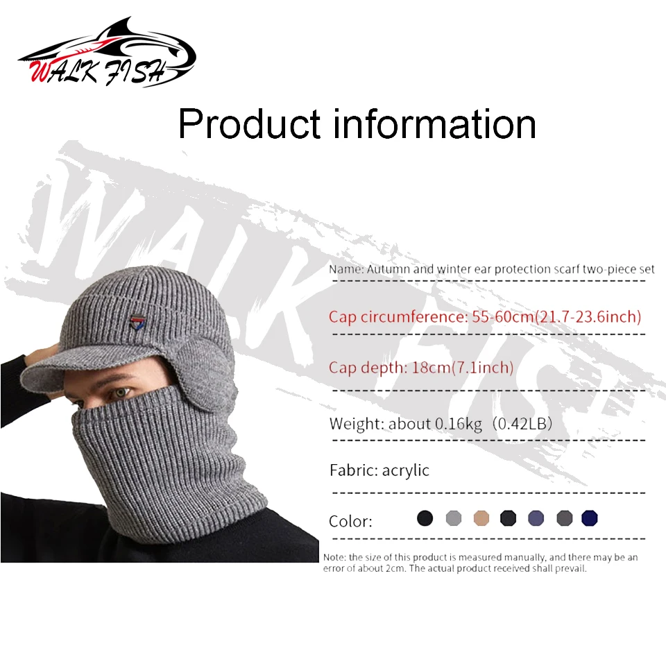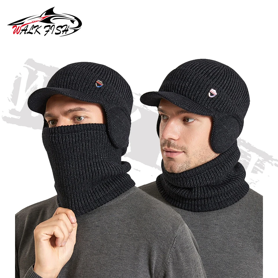 WALK FISH invierno pesca calidez protección para los oídos sombrero bufanda conjunto con gorro de terciopelo Unisex esquí a prueba de viento Jersey sombrero de punto